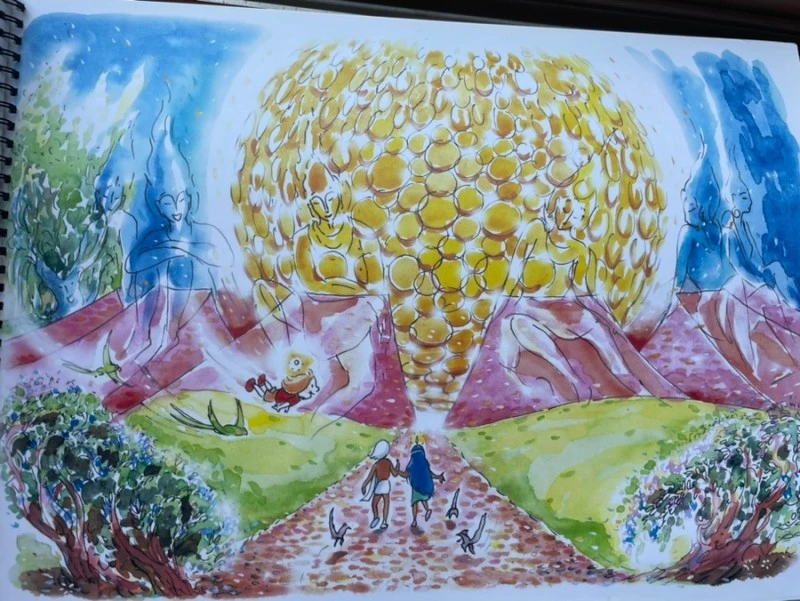 (마트리만디르는 개인 소지품을 포함한 모든 전자기기 반입이 불가하다. 사진 촬영을 할 수 없는 아쉬움과 동시에 휴대폰과의 이별이 반가웠다. 이 글에 있는 그림은 오로빌 도서관에서 본 책. 엠마뉴엘의 <불꽃섬의 보물>에 있는 그림이다.)