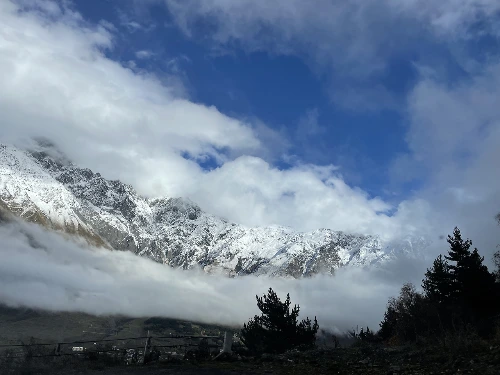 카즈벡산은 해발 5,047미터이다. 캅카스 산맥 일곱 개의 산으로 둘러싸인 산 아랫마을 스테판츠민다에서 3일 밤을 보내기로 했다.