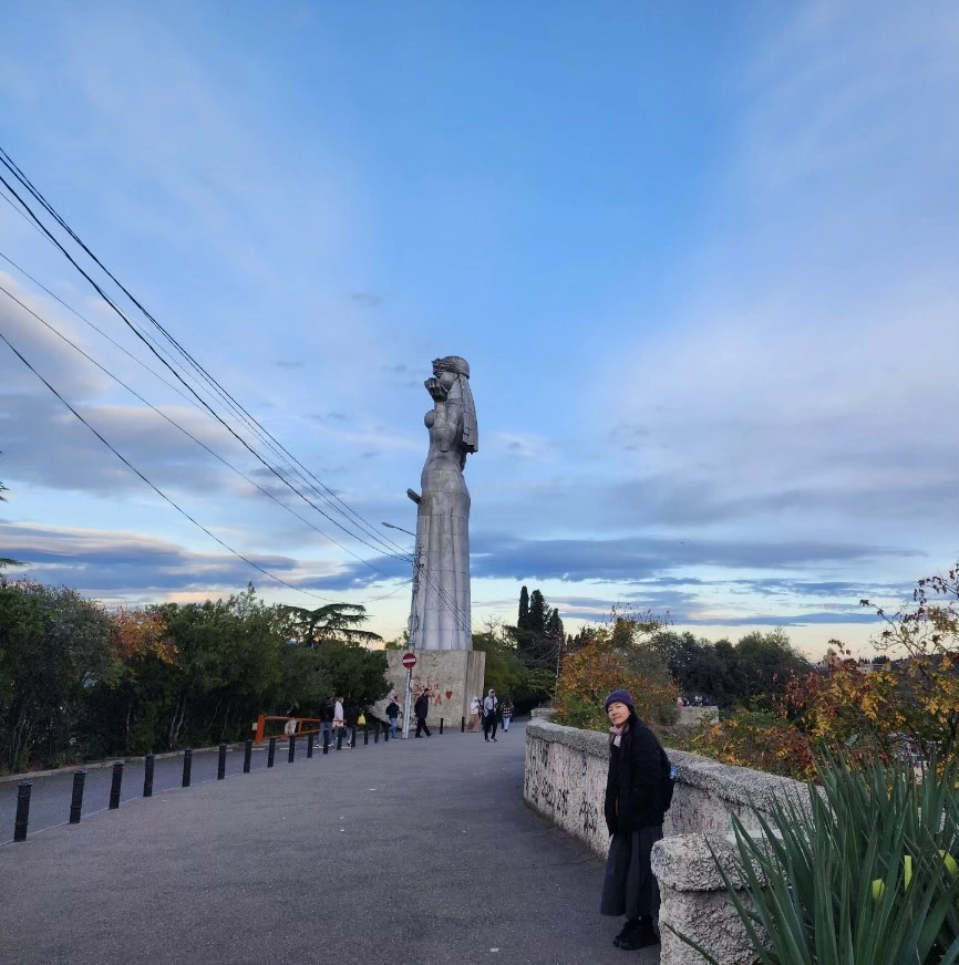 차를 타고 므타츠민다 산에 올라 조지아 어머니상에 다다랐다. 알루미늄으로 만들어진 높이 20미터쯤 되는 동상은 조지아 전통 복장을 한 여인이 왼손에는 와인 잔을 오른손에는 검을 쥐고 있었다. 손님에게는 우호의 태도를, 외적의 침입에는 칼로 맞서겠다는 조지아 인들의 의지를 표현한 동상이라 한다.