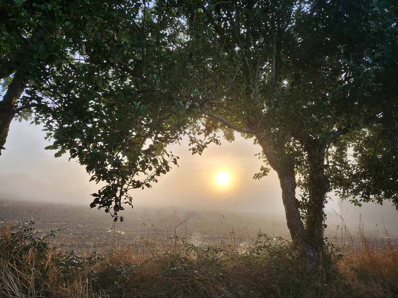 8:40분. 해가 비치고 얼마 후 안개에서 벗어나다.