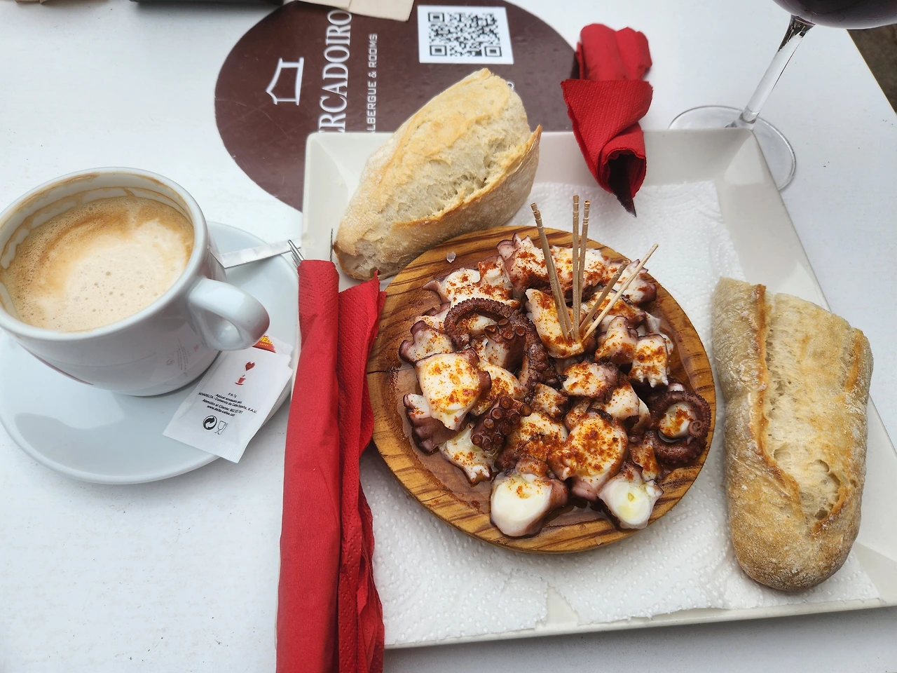 문어가 15유로를 하는 까페가 있어 들어서다.