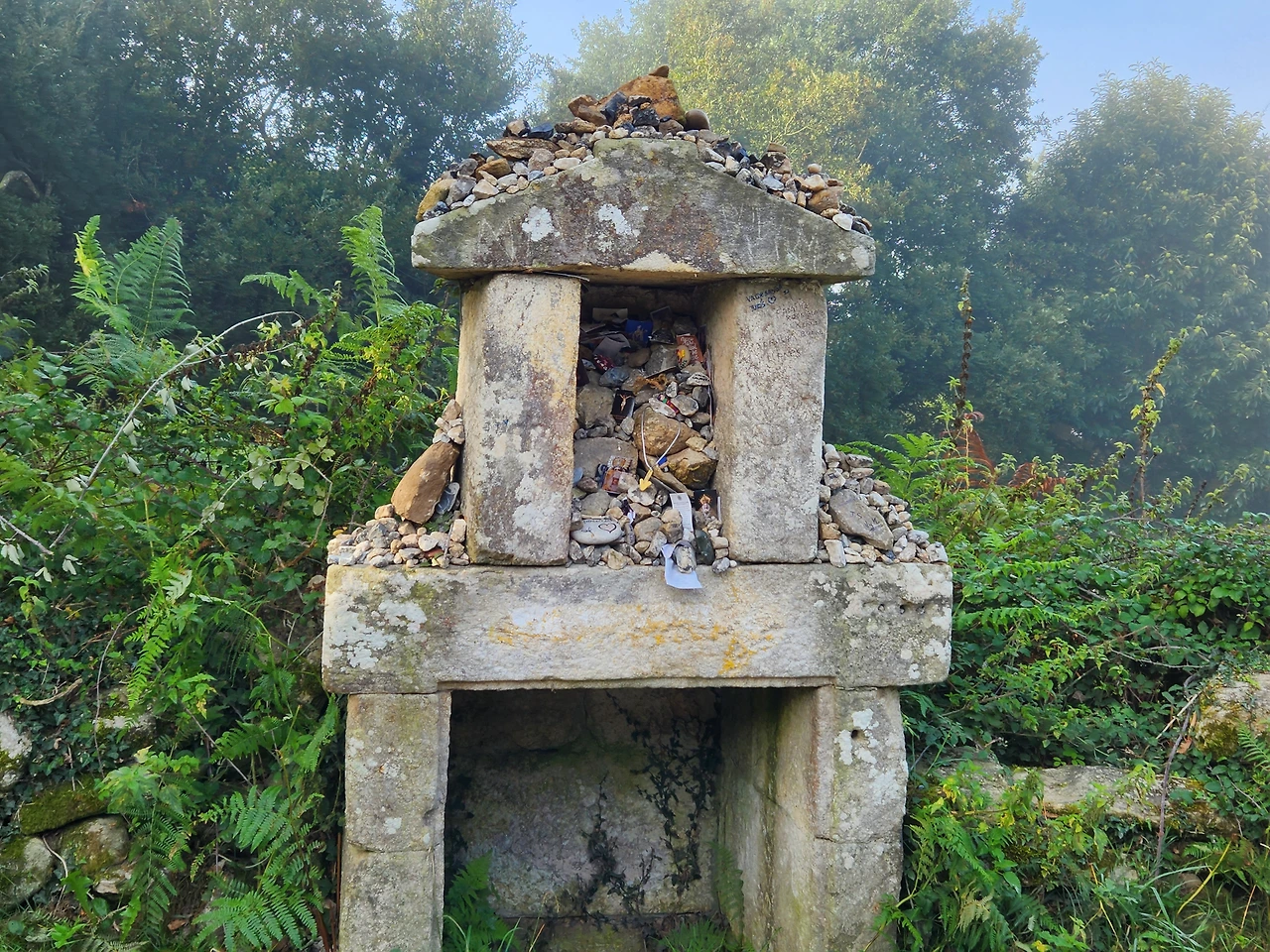 100km 가까운 지역에 돌탑이 서있는데 작은 돌맹이, 십자가, 메모, 상본 등이 가득하다.