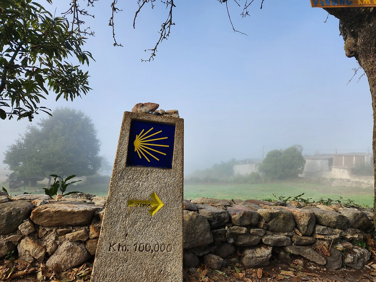 드디어 산티아고가 100킬로 남았다는 표지석을 마주하다.