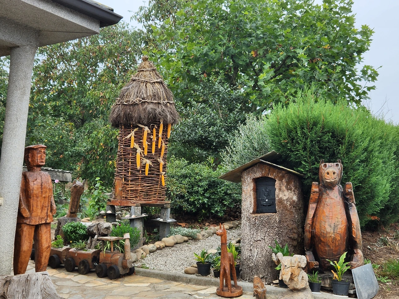 뒤이어 까스토로 마을과 다른 까페를 지나니 귀여운 마스코트 집이 있어 아저씨께 엄지척을 했더니 반갑게 손을 흔든다.