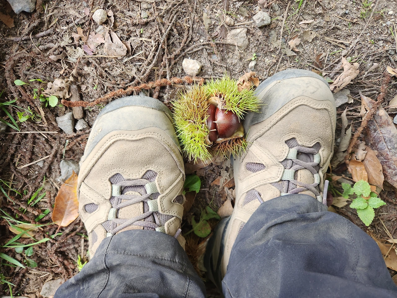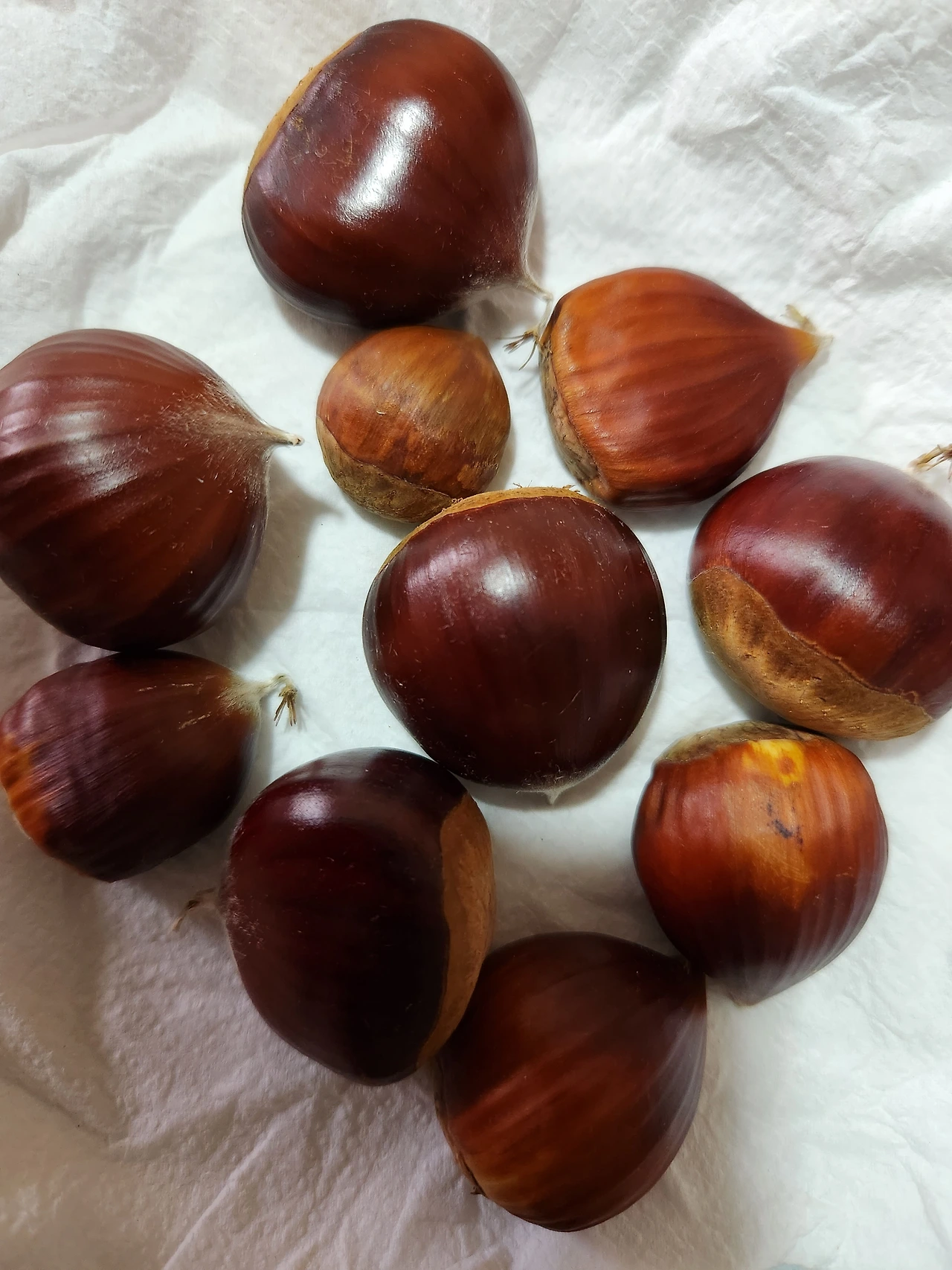 안 되는 밤송이를 스틱으로 쪼아가며 여는 데도 여러 번 내려치는 노력이 필요했다.