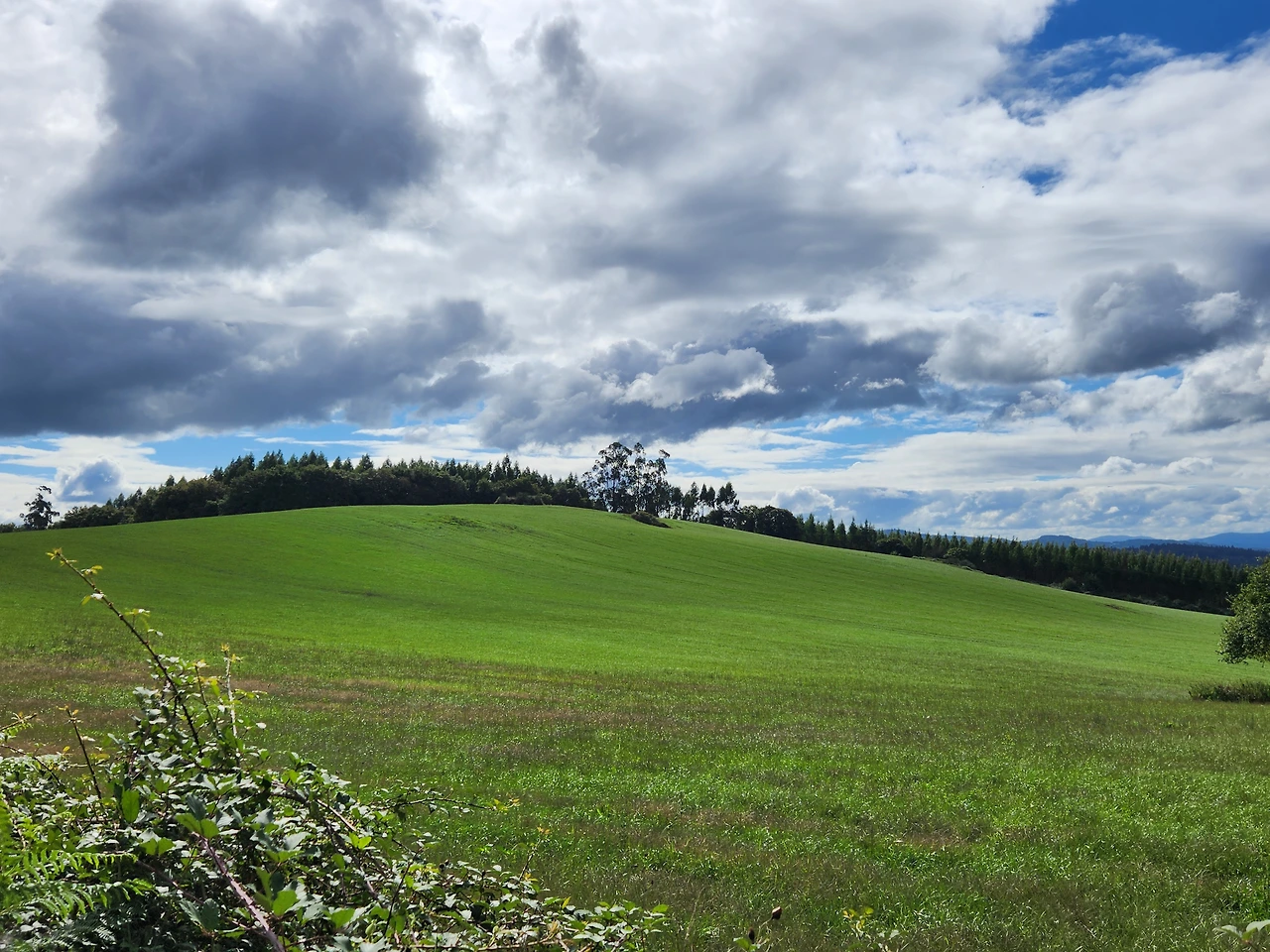 맑은 하늘과 초원을 보고 숲길을 걸으며