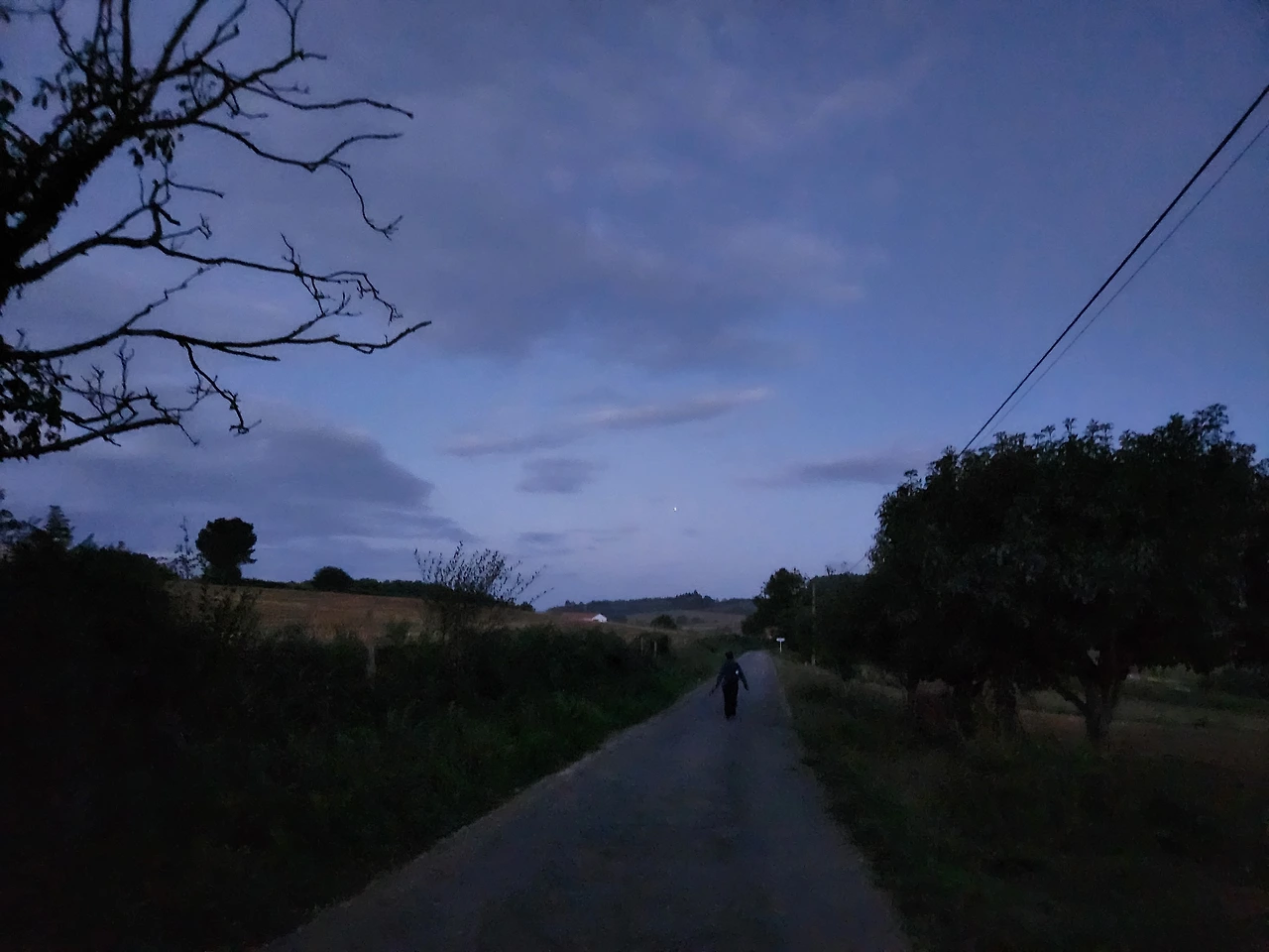 7:20분, 어둠이 가시기 전 핸드폰 후레쉬를 켜고 걷기 시작하다.