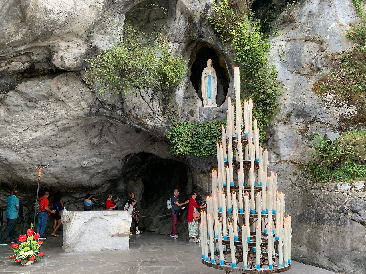 남편과 저녁을 먹고 우리는 다시 성당으로 갔다. 루르드 성당의 오른쪽 한 귀퉁이에는 마사비엘 동굴이 있다. 마사비엘 동굴 주변엔 많은 사람들이 앉아서 묵주의 기도를 한다. 가난한 농부의 딸인 14살의 소녀에게 성모님이 나타나서 말씀하신 장소가 이 작은 바위 동굴이었다니!
