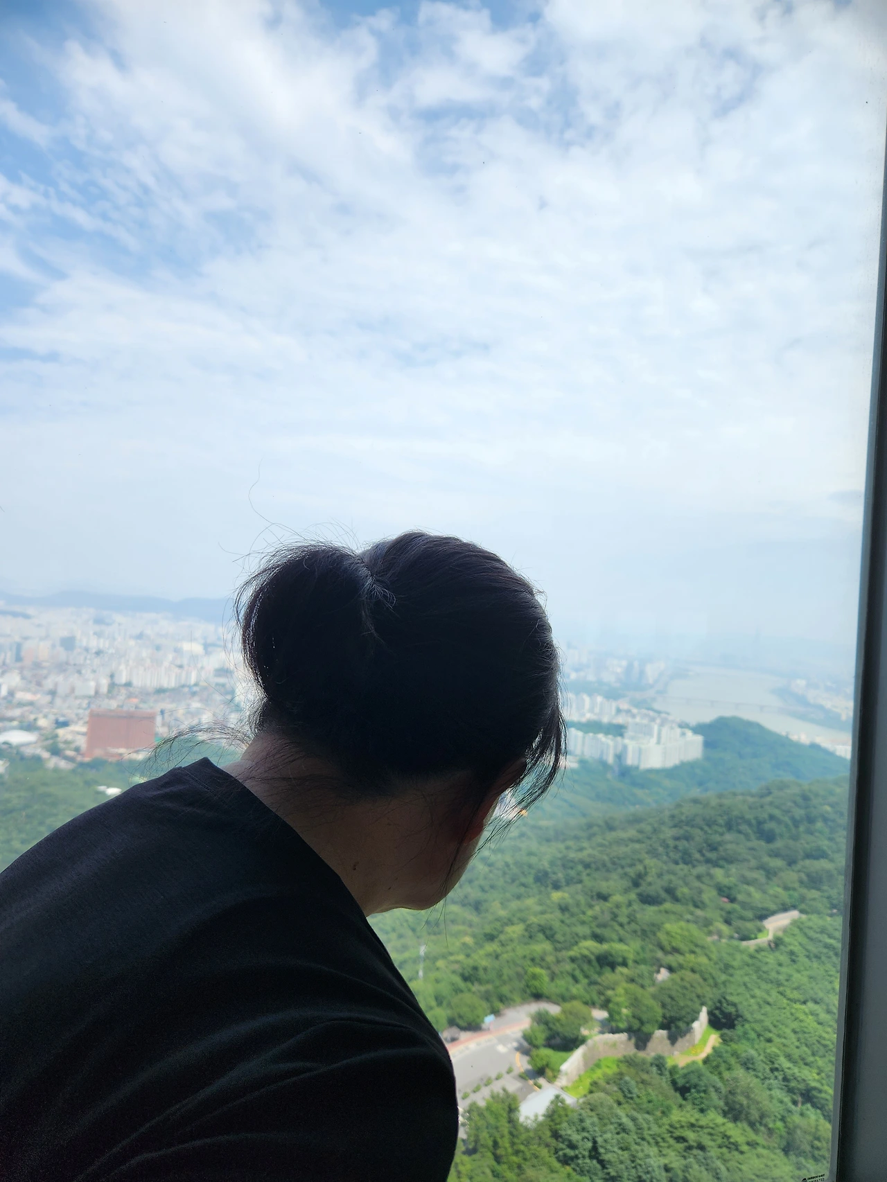 언니들과 엘리베이터를 타고 타워 꼭대기로 올라갔다. 전망대에 이르러 휠체어를 유리창 쪽으로 밀었다.