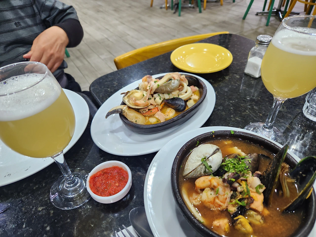 해물탕과 해물 볶음에다 피스코샤워 두 잔을 시키다. 해물탕 국물이 된장국과 비슷한 색깔인데다 짜지 않아서 좋았다. 칵테일 인데도 마시니 취기가 올라 알딸딸해졌다. 대낮부터 기분 좋게 취했다.