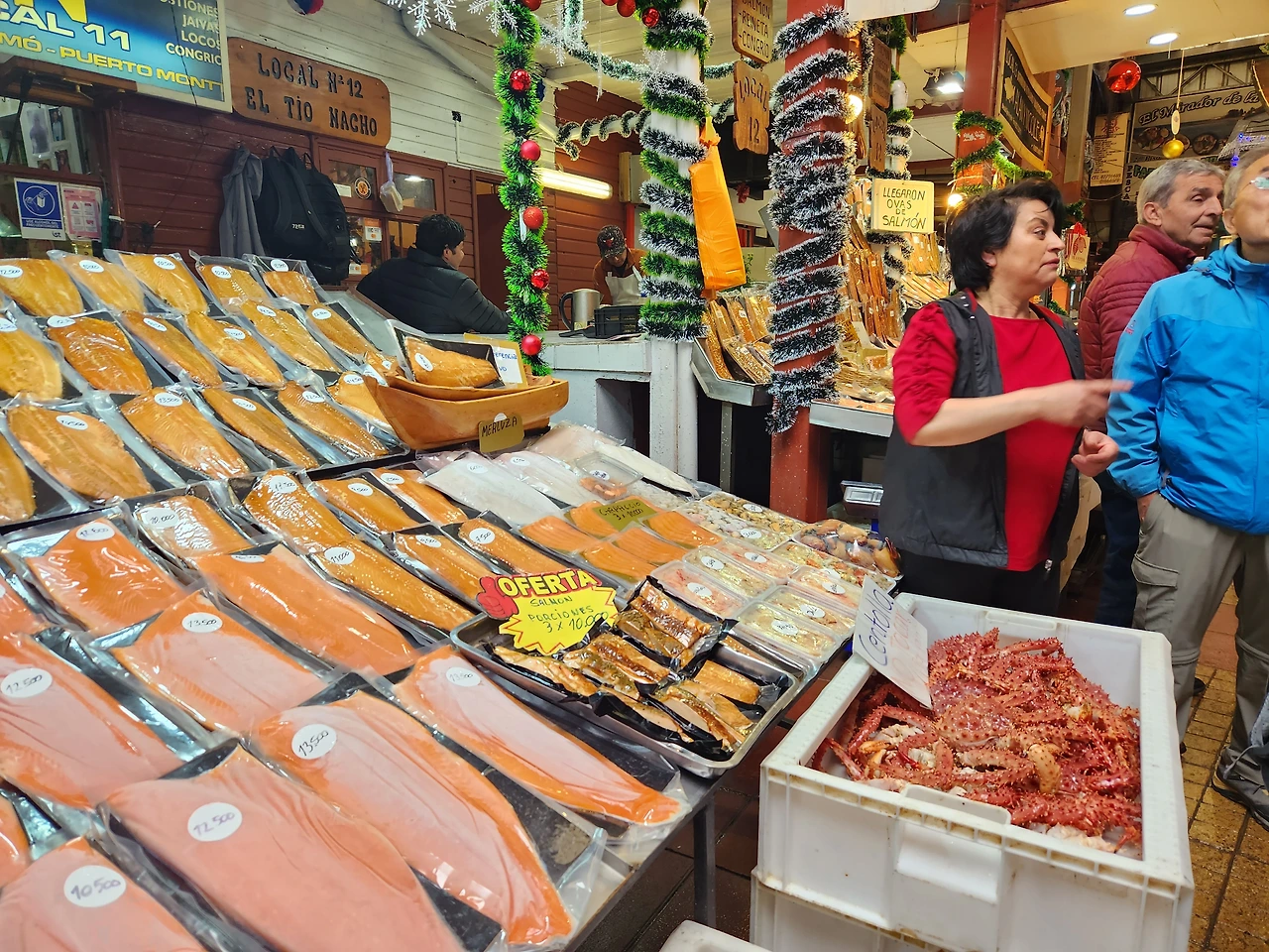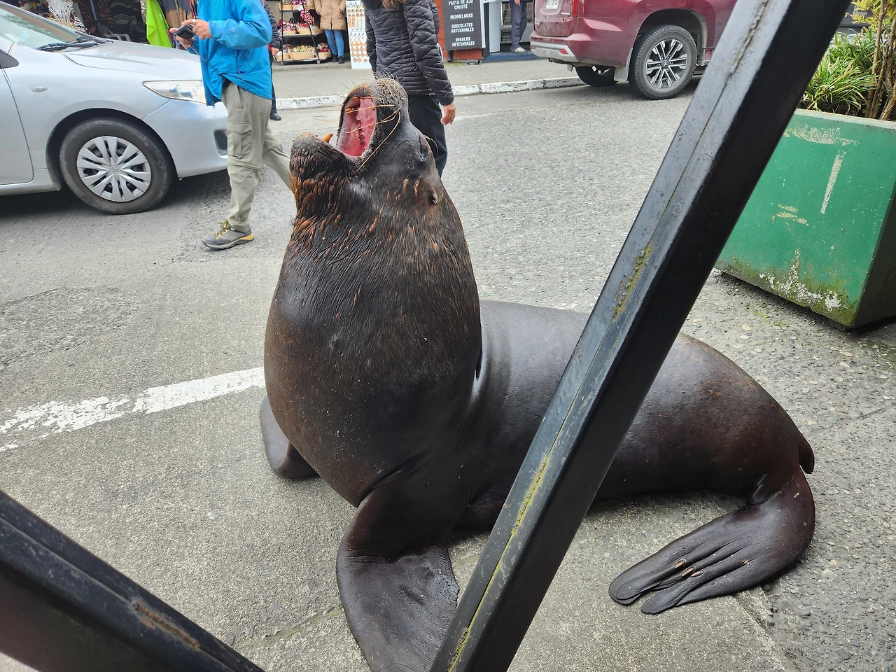 앙헬모 시장에 가서 25000페소 짜리 대개를 실컷 먹고 나오다 시장을 돌아다니는 바다사자를 보다.
