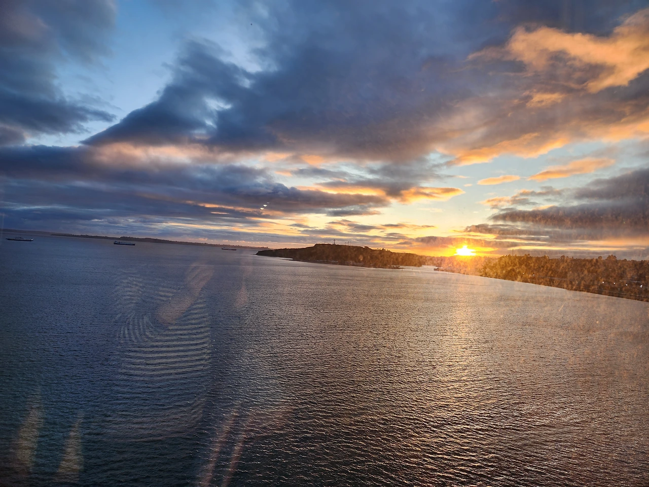 다시 푸에르토 몬트에서 연어를 노래하는 부산 아저씨네와 연어 1인분과 샐러드를 나눠먹고 돌아온 저녁, 노보텔 호텔에서 지는 태양을 바라다보다.