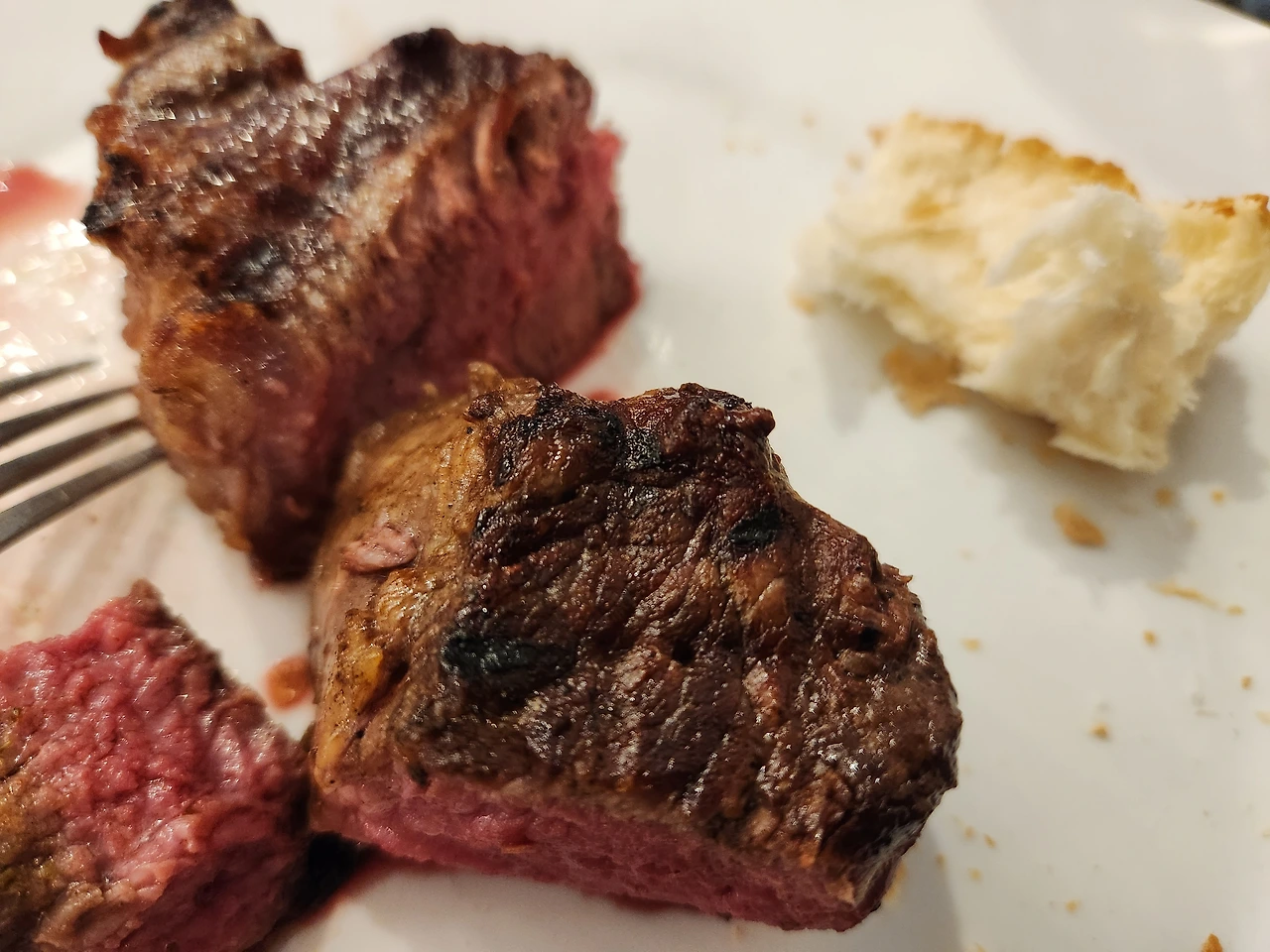 밤 11시가 다 되어 자릴 잡고 등심과 안심 그리고 립아이를 시켜서 와인과 함께 먹다.
