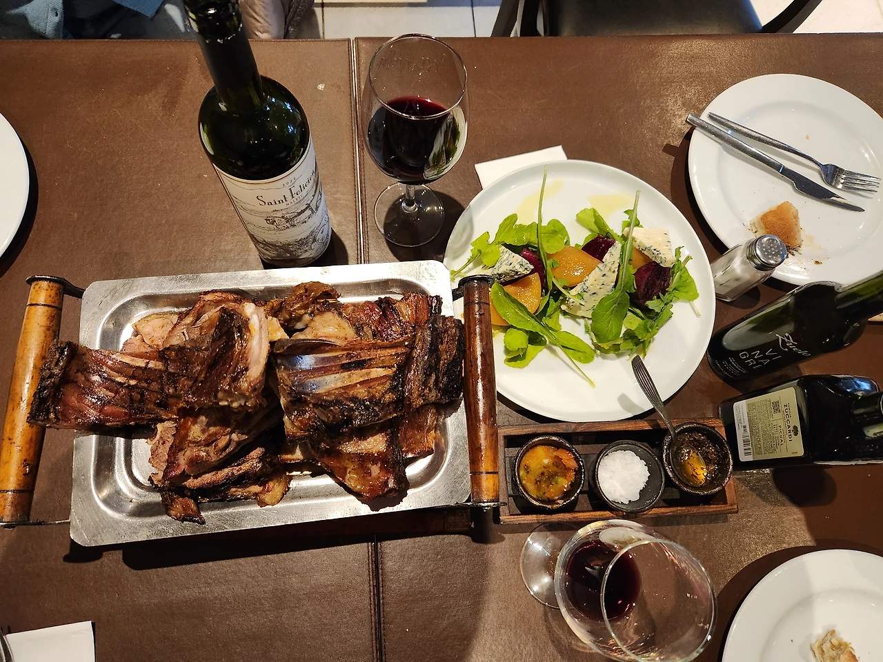 마을 투어를 끝내고 우리도 식당으로 들어가 자리를 잡았다. 값싸고 좋은 포도주에 양고기라...