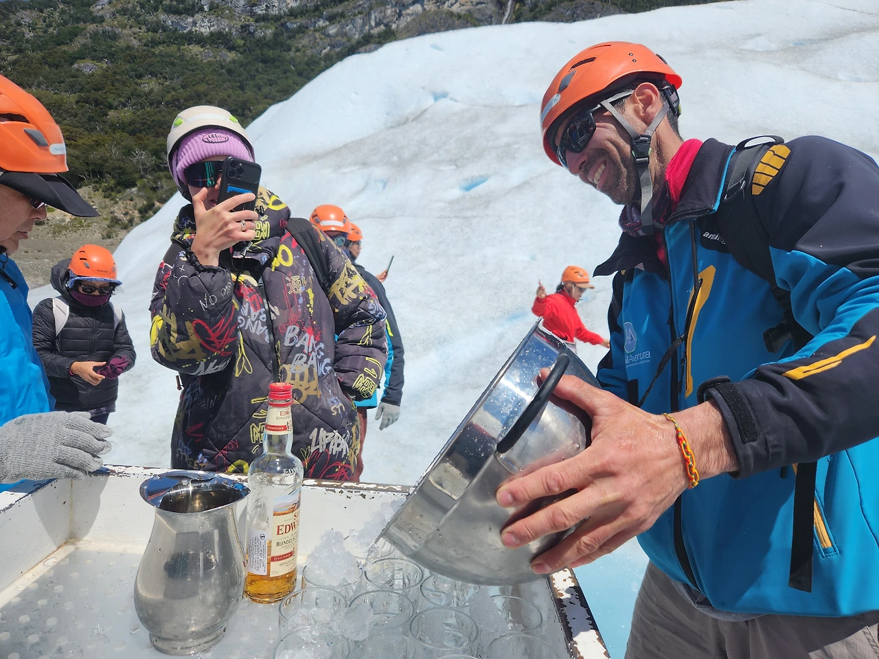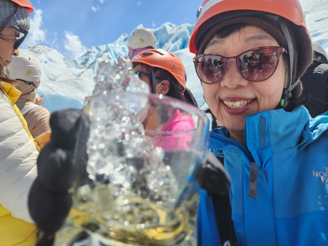 1시간 반 정도 빙하트래킹을 하다가 끝무렵에 가이드가 빙하를 깨뜨리더니 와인 잔에 부은 다음 그 위에 위스키를 따라 주었다. 다들 잔을 부여잡고 축하를 나누며 기분좋게 빙하를 넣은 위스키에 젖어들었다.