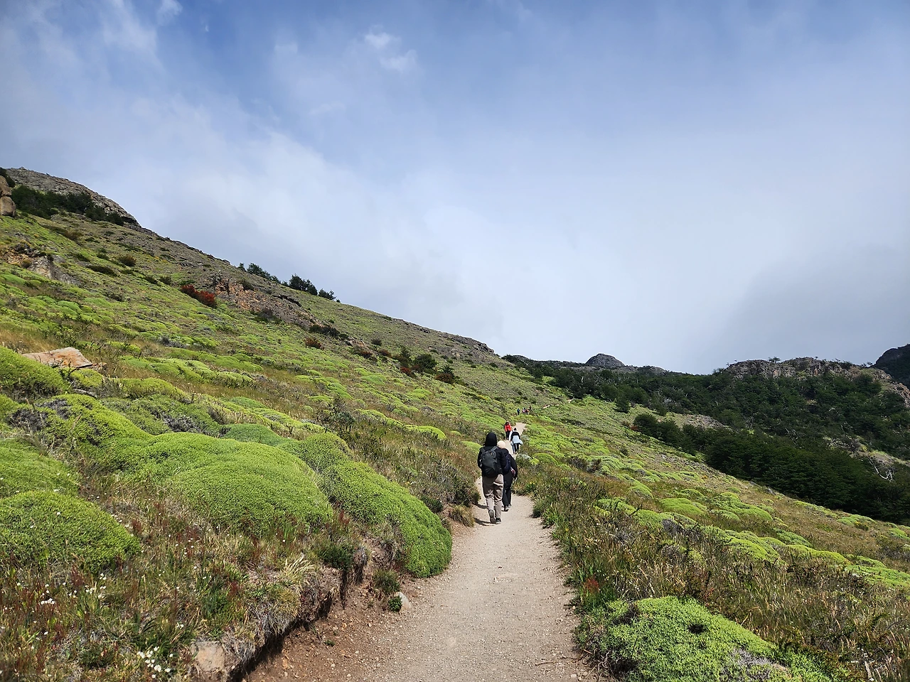 피츠로이 방면으로 걷는데 마치 어릿목이나 성판악 코스처럼 완만하게 경사져서 걷기가 쉽다. 남편에게 그 말하니 해발 5000미터가 된다고.. 우리는 중간만 도는 것이라 그렇다고 한다.