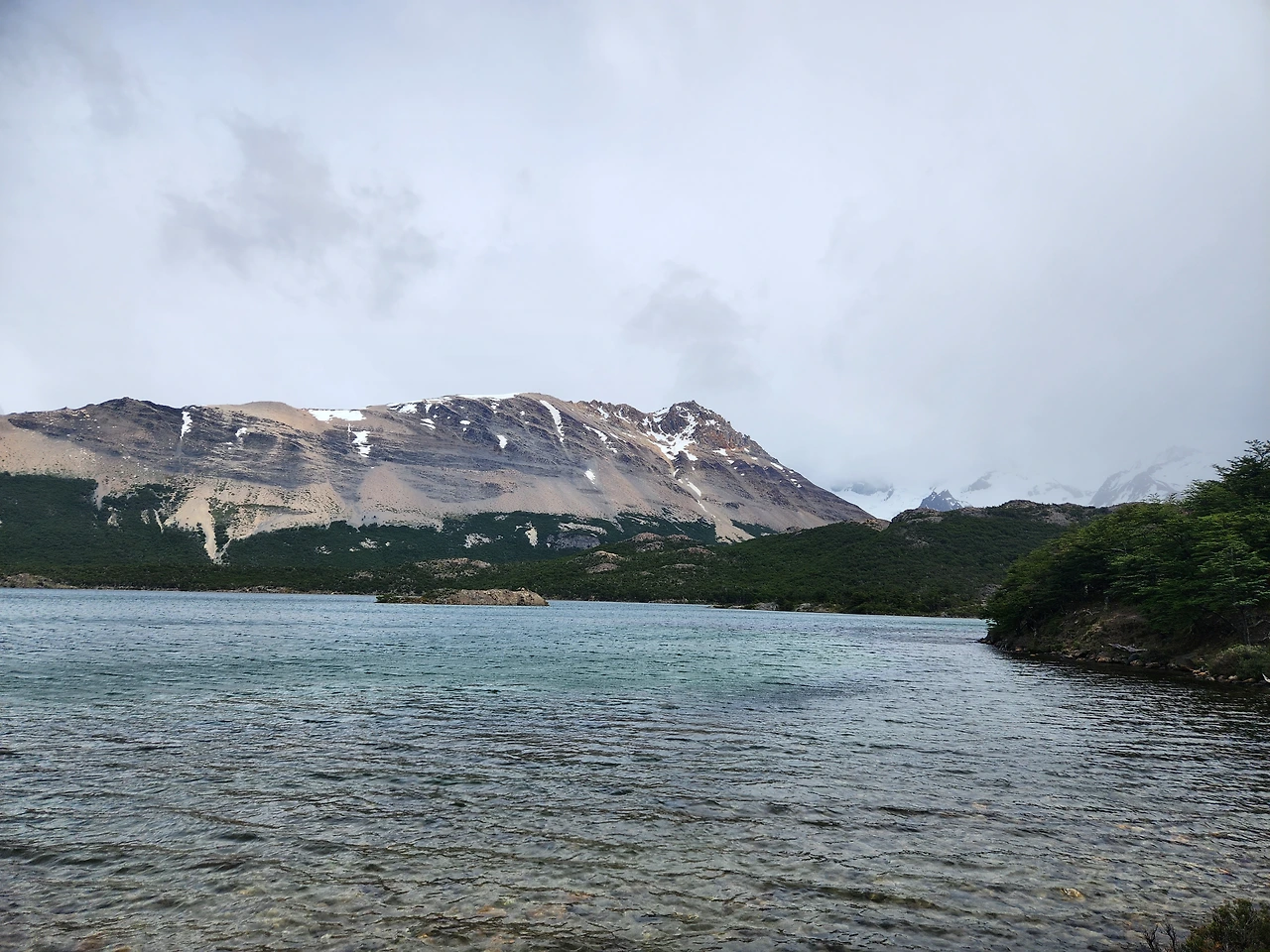 카프리 호수의 물은 맑았고 바람이 많이 불어 물결이 휘날리며 찰랑이는 소리를 냈다. 호숫가에 앉아 보온병에 담아간 물을 마시며 피츠로이를 바라보았다. 멀리 내다보이는 피츠로이산은 안개에 휘감겨 웅혼한 제 모습을 가리고 있었다.