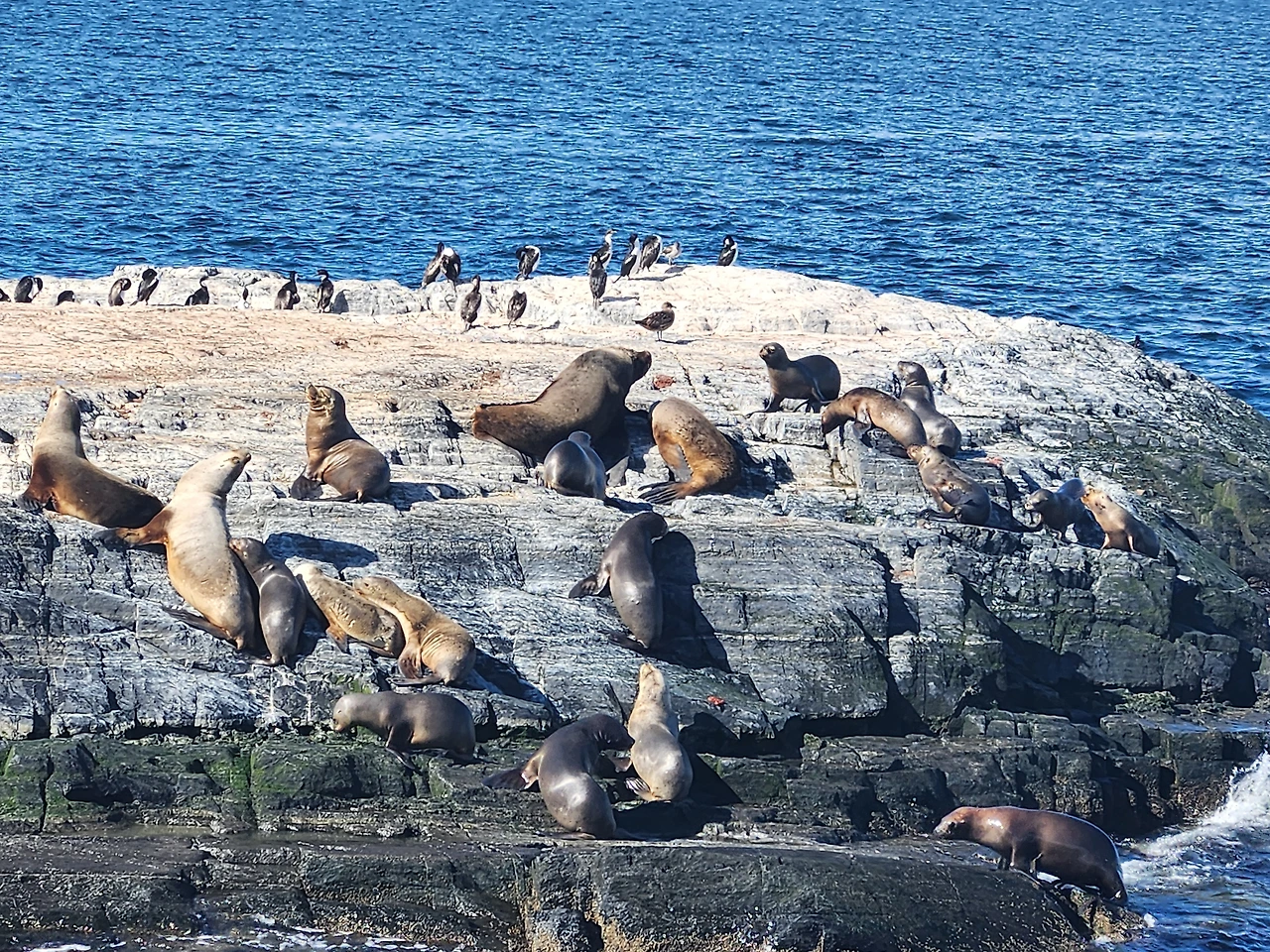 바닷물결이 빛을 받아 반짝이며 일렁이고 우리는 가마우지 섬을 지나 나바리노 섬을 향해 나아가고 있다. 그곳은 아르헨티나에 가까운데 칠레 인들이 사는 섬이다. 주로 비글해협을 경계로 아르헨티나와 칠레로 나뉘어 있다.