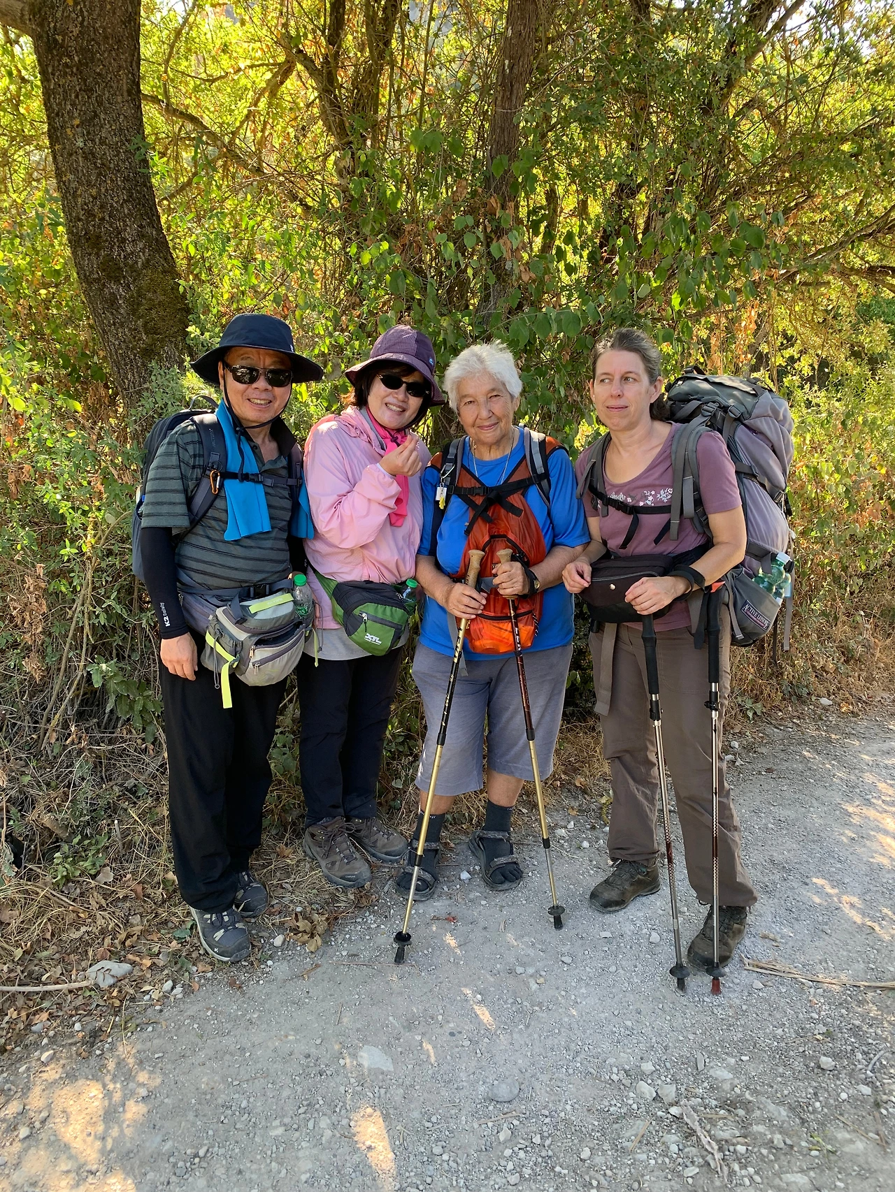 그런데 그런 내 마음이 통했던 것일까? 우리보다 먼저 수리아인을 떠났던 그녀들인데 한참을 가니 린다가 뒤돌아서서 웃고 있다. 같이 사진을 찍자고. 자기네는 산티아고까지 가지 않는다나...