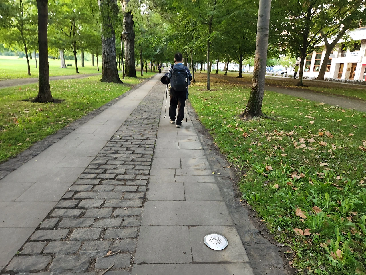 팜플로나 시내에서는 이런 동그란 쇠판에 조개 모양의 표지로 안내를 해 주었다.