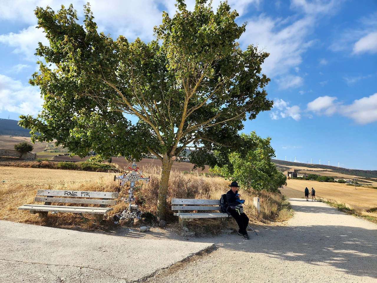 오늘도 순례자의 무덤을 지난다. 벌써 3번째다. 그 옆에서 앉아 쉬다가 목포에서 올라온 두 젊은이를 만나 납작복숭아를 나눠 먹다.
