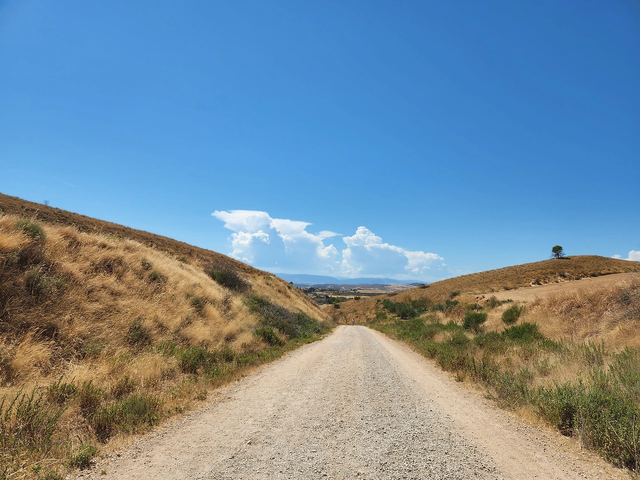 평원 사이의 소로를 걷다가 그늘에서 초코바를 먹다. 씨에스타에 걸리면 오늘 점심은 그것으로 끝이다...