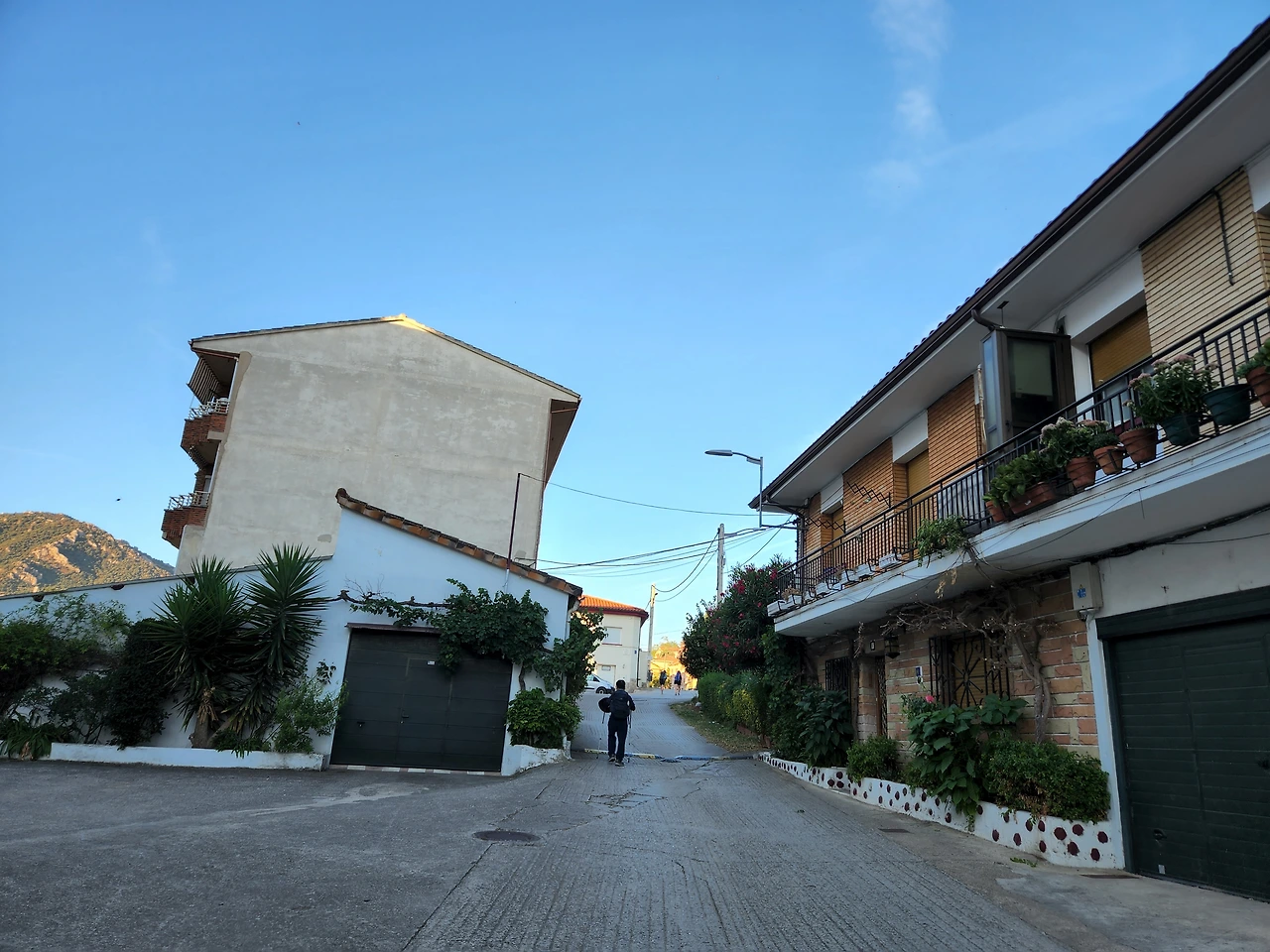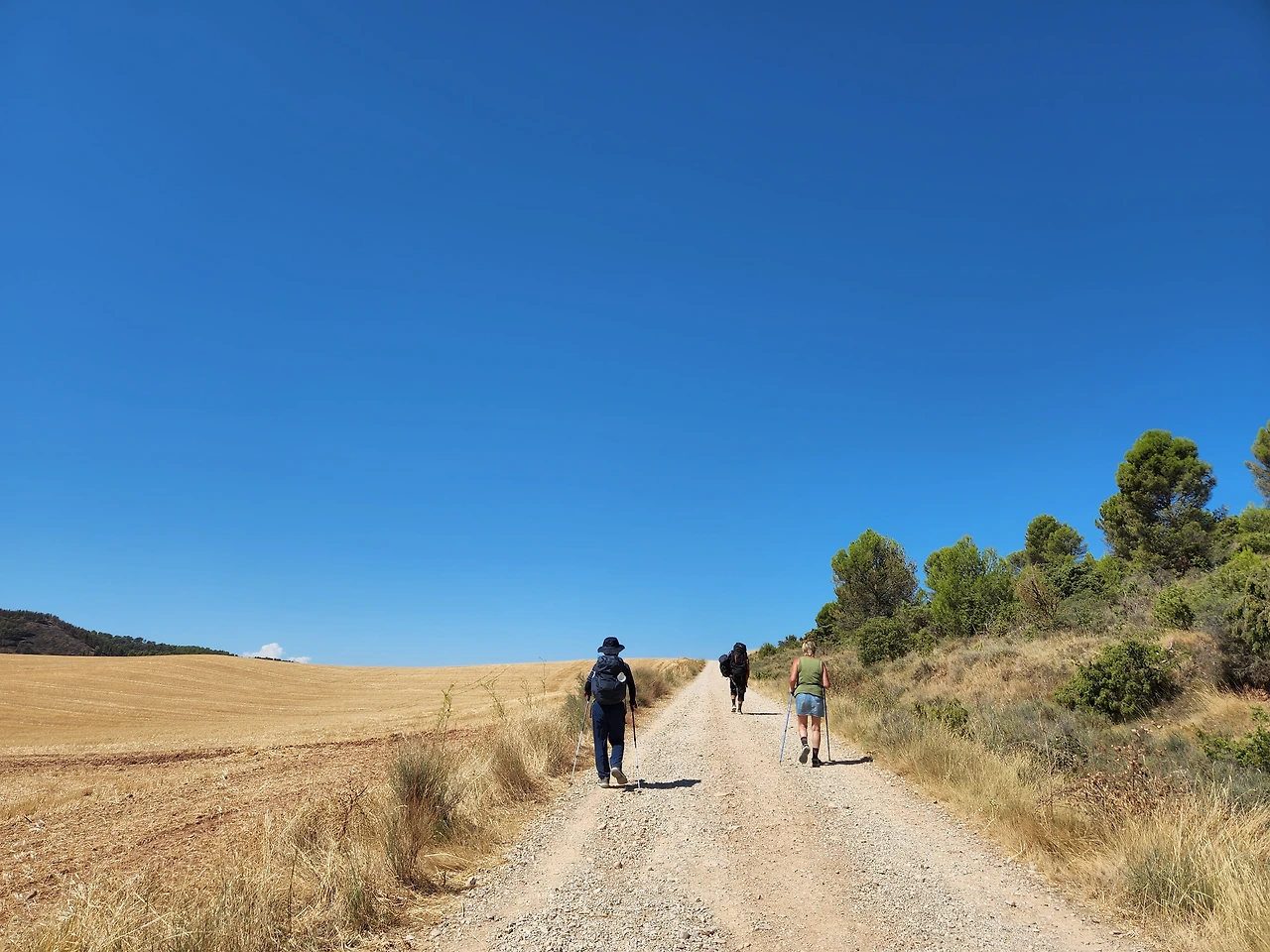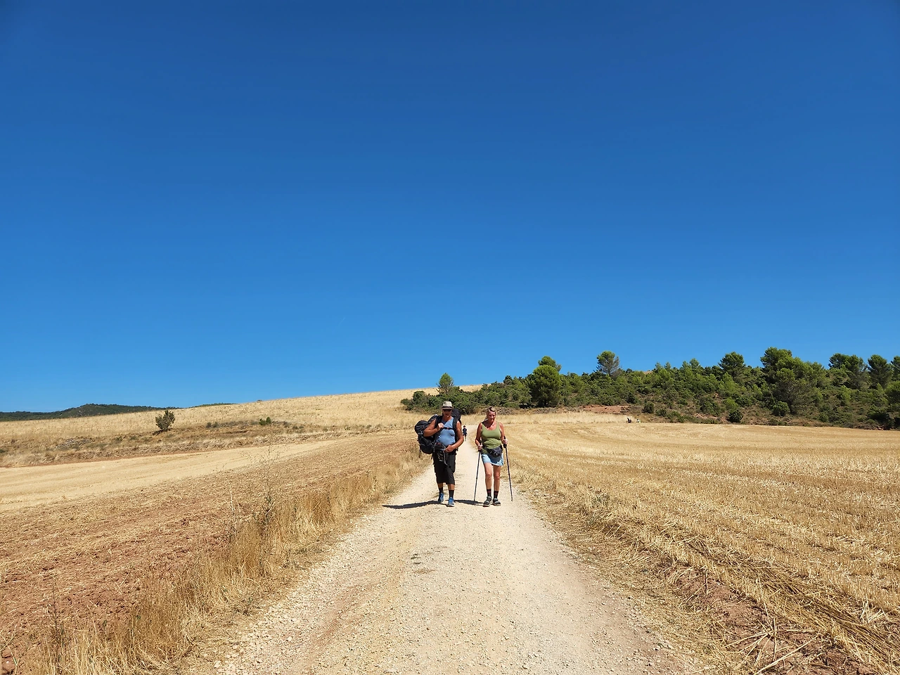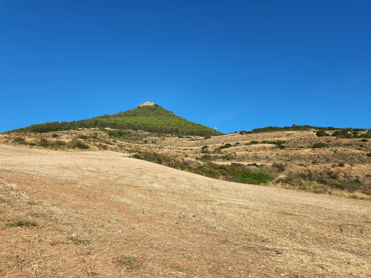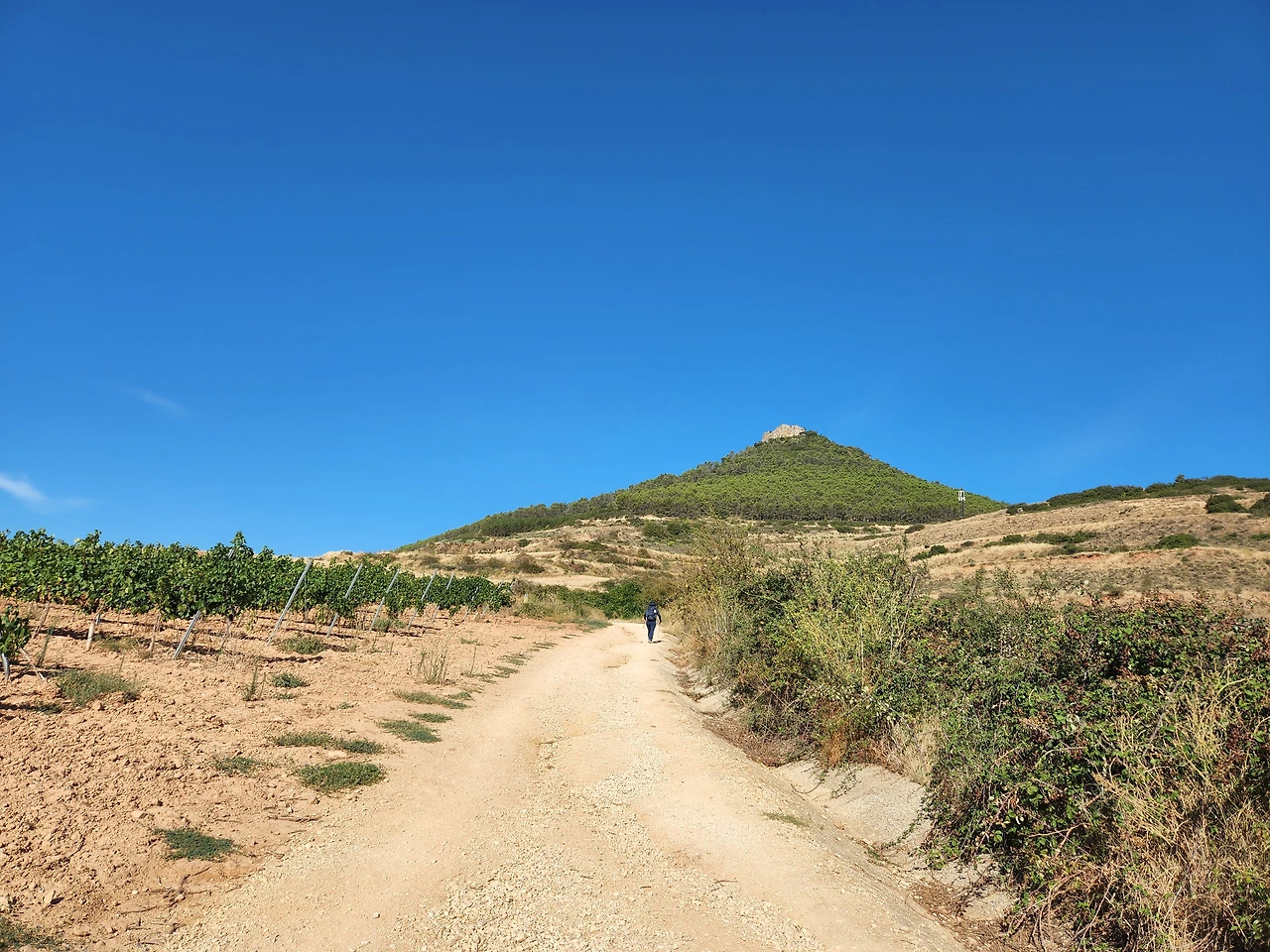 포도주가 들어가서 노곤한게 기분이 좋다. 가다보니 산등성이에 성곽이 보이기 시작한다. 시골의 갈림길에도 안내 표지가 보인다. 가리비 문양과 노란 화살표.. 프랑스쪽은 빨갛고 하얀 줄로 표시됐었는데 아무튼 나타나면 참 반갑다.