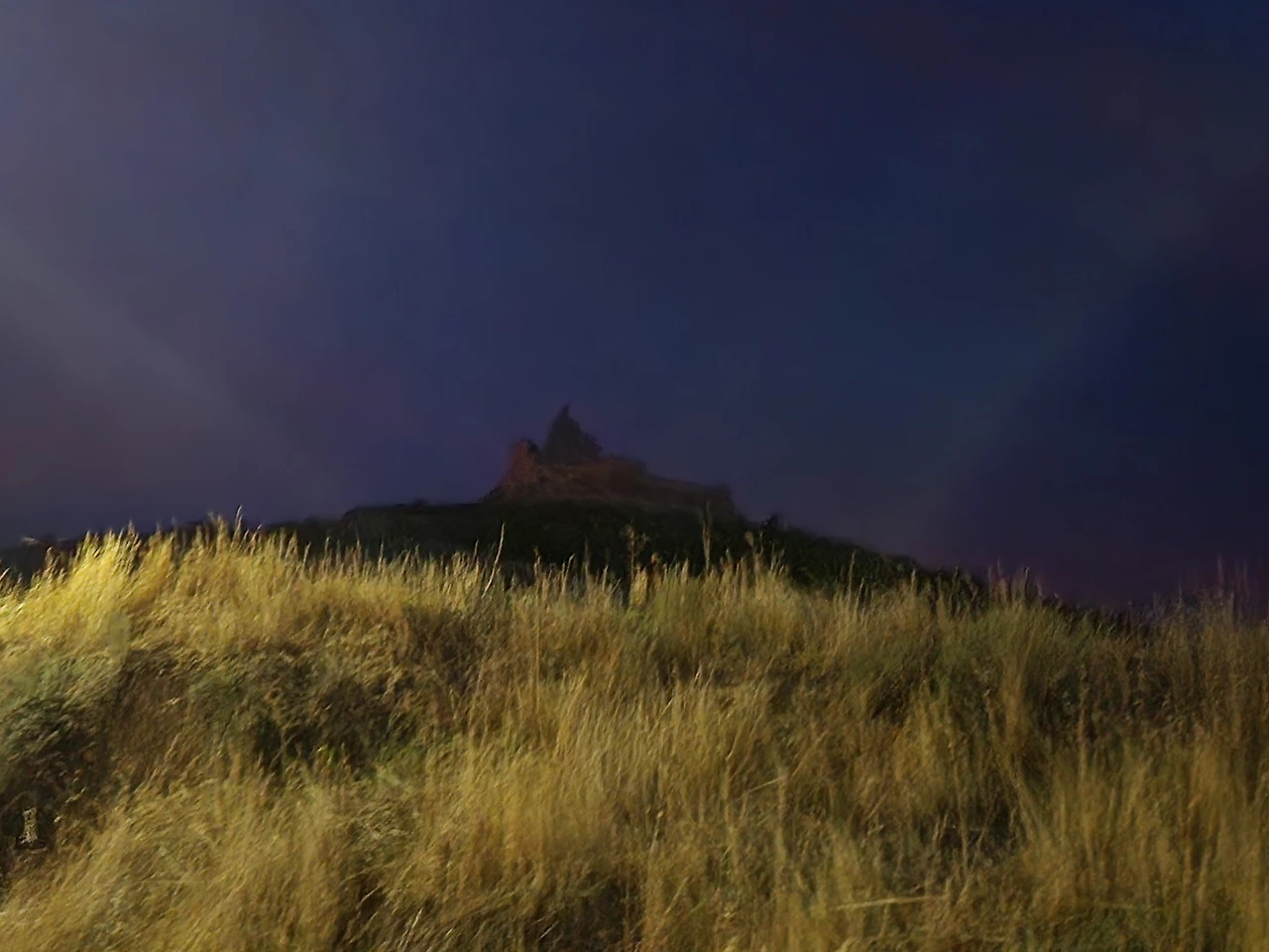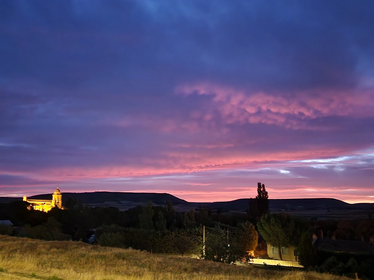 마을을 벗어나는데 서서히 오늘의 해를 출산하려는 가... 까스트로 해리스의 성당만 보이고 마을은 어둠에 잠겨있다.