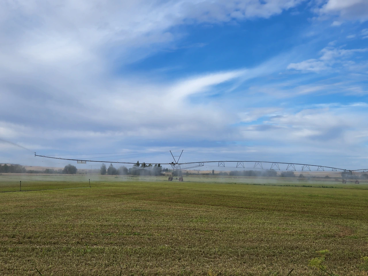 9:50, 평원을 지나는데, 잠자리 날개처럼 보이는 스프링 쿨러에서 물이 뿜어져 나오는 것이 보이다.