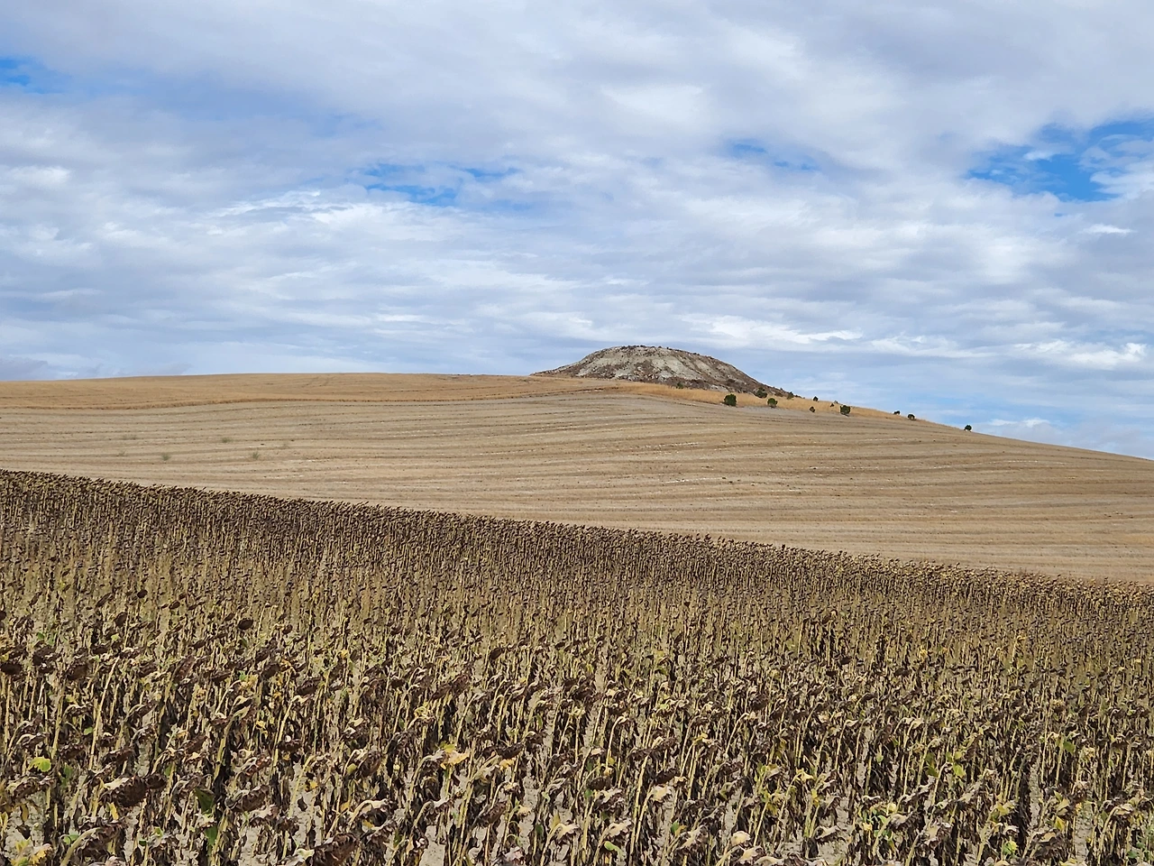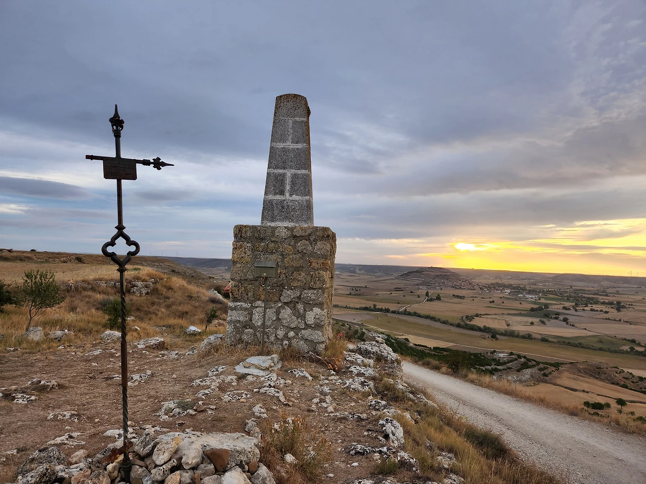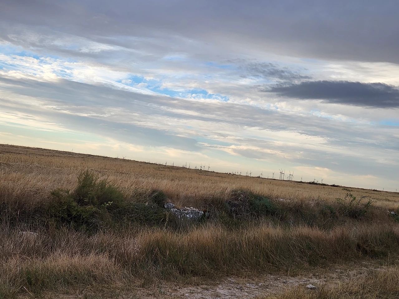 해발 900미터, 고개를 올라가니 탑이 서있다. 오늘도 어제와 같이 넓은 평원이 펼쳐지고 지평선엔 풍차들이 돌고 있다.