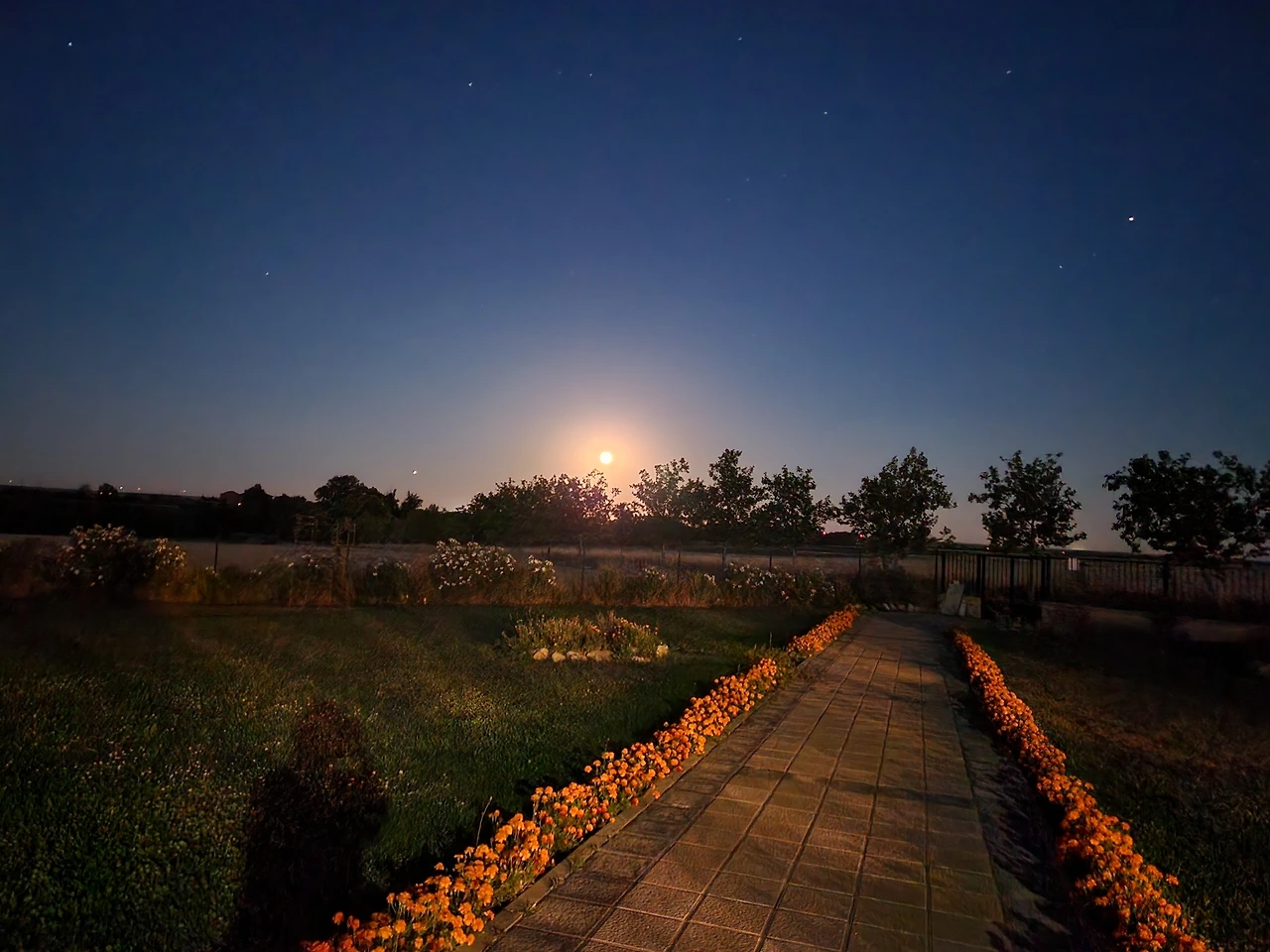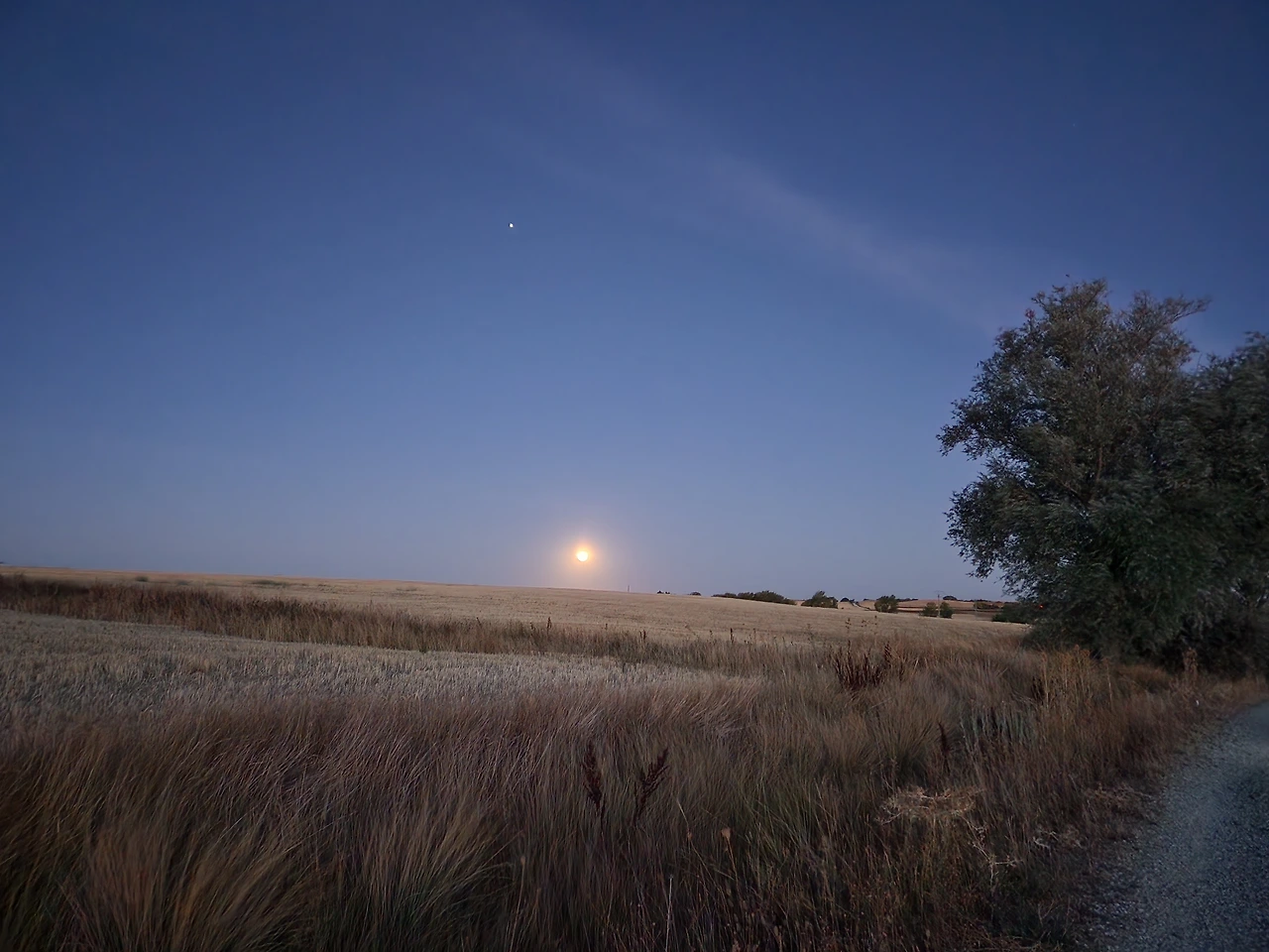밤 9:30분, 고향에서와 같은 보름달은 다시 떠오르는데... 순례자들은 방으로 사라지고 풀벌레 소리만 가을 들녁에 울려 퍼지네.