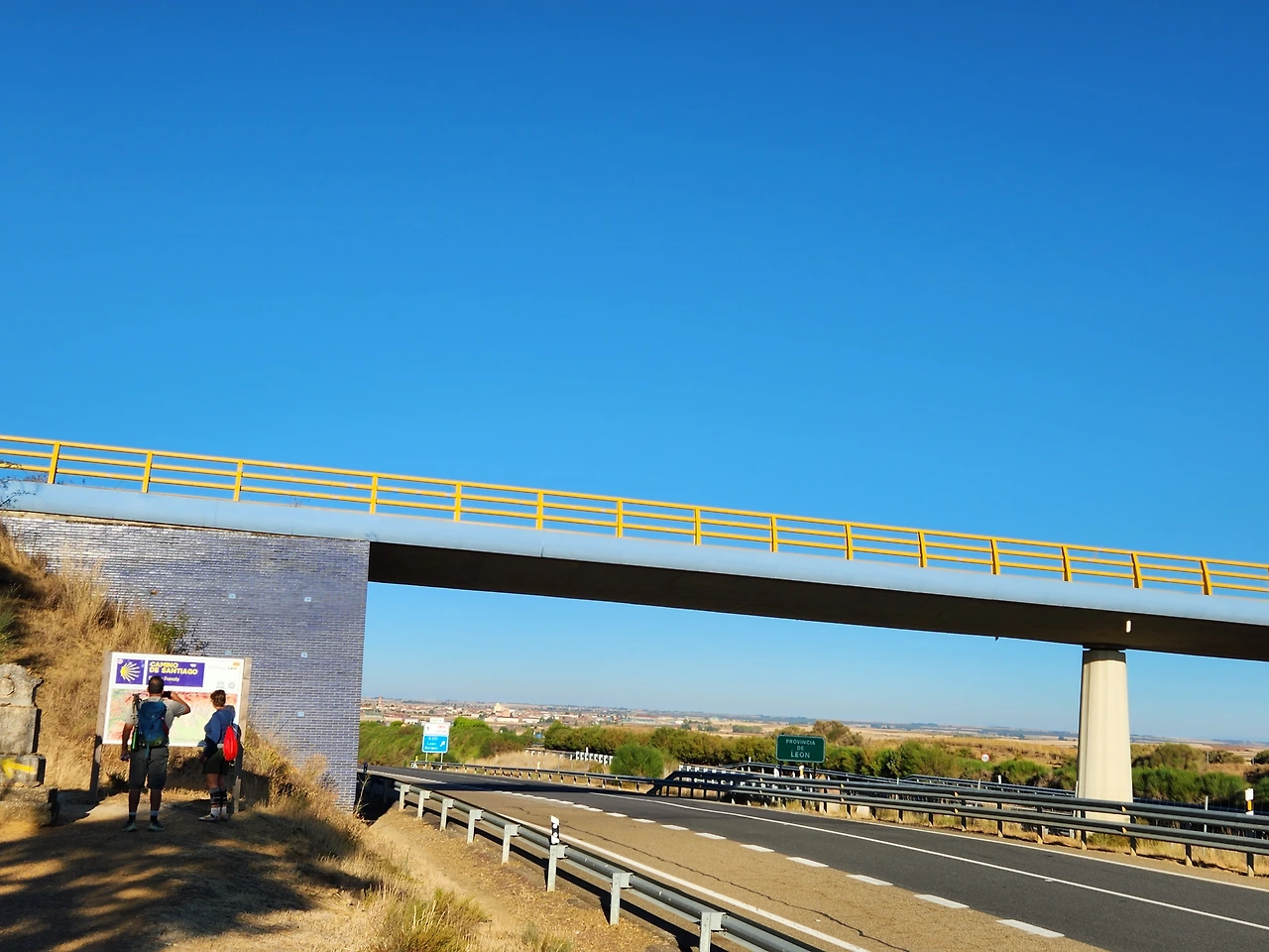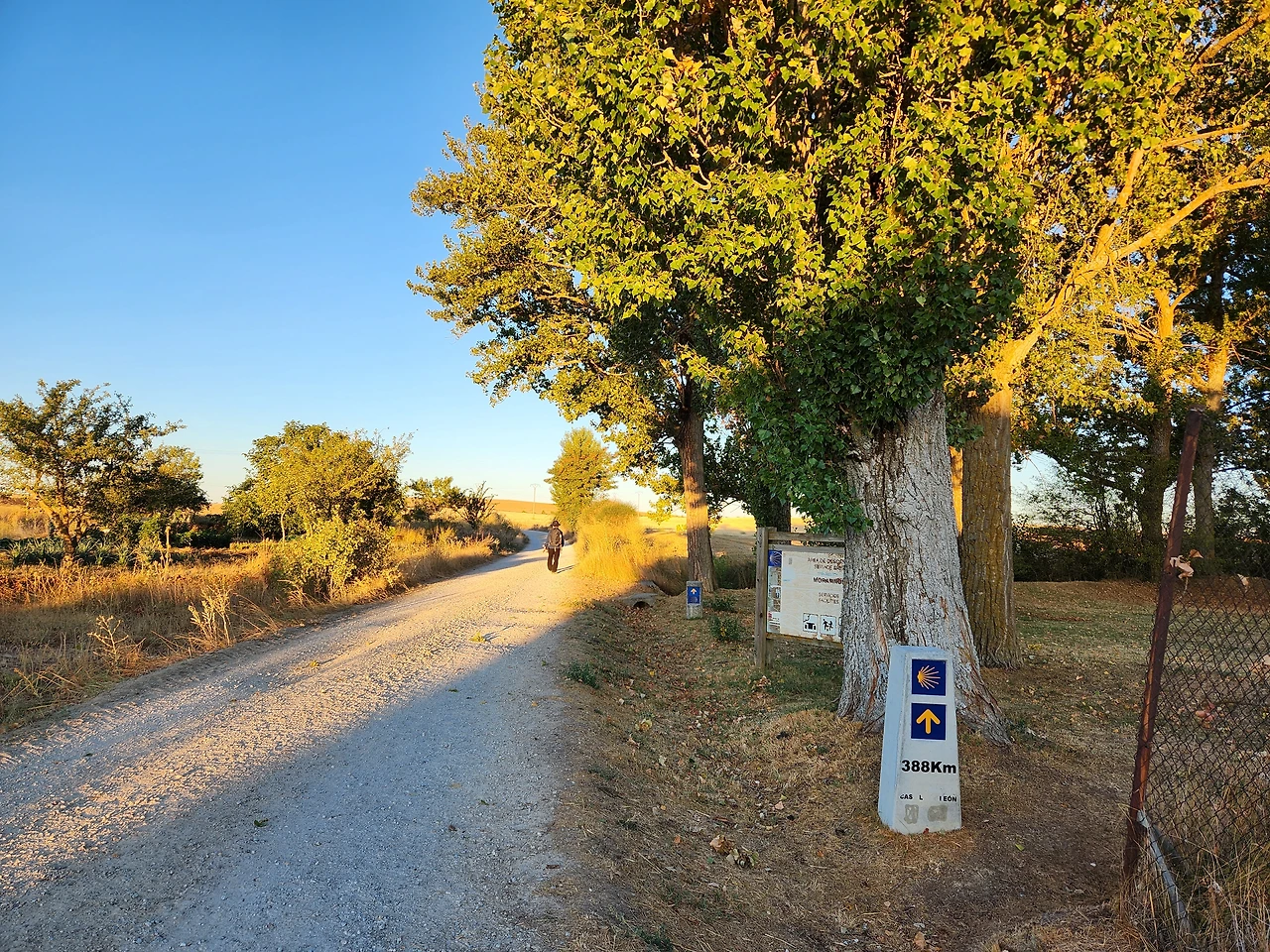 오늘은 추석날, 6:50분, 떼라디요스 알베르게를 나오려는데 프랑스 할아버지가 지금은 어둡다고 랜턴을 키고 가라고 해서 랜턴을 키다.