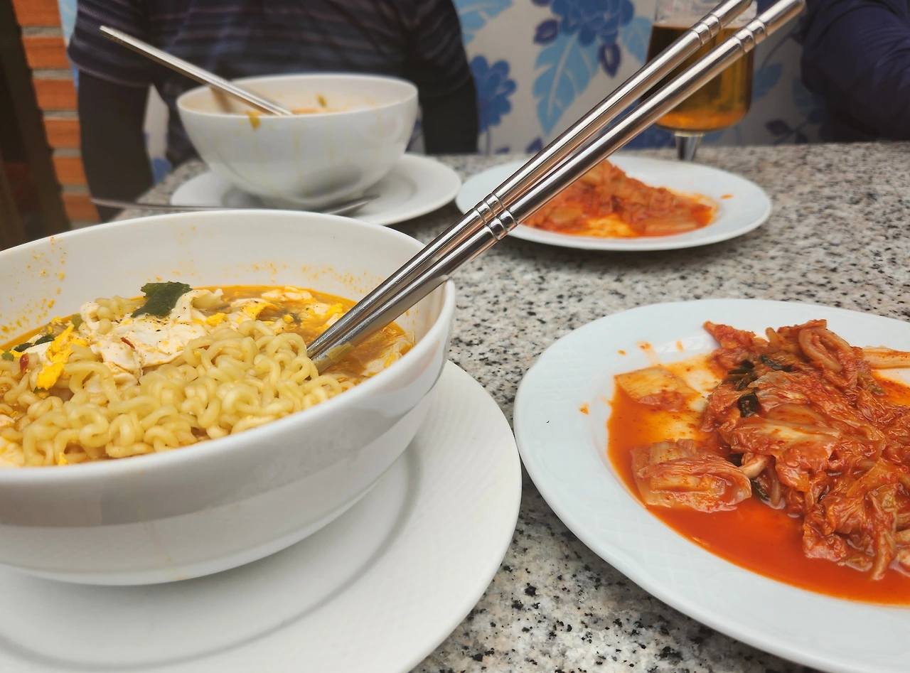 12:40분에, 이제까지 걷던 중 가장 빠른 시간에 엘 피라 알베르게에 도착하여, 드디어 김치가 들어있는 음식을 먹다.