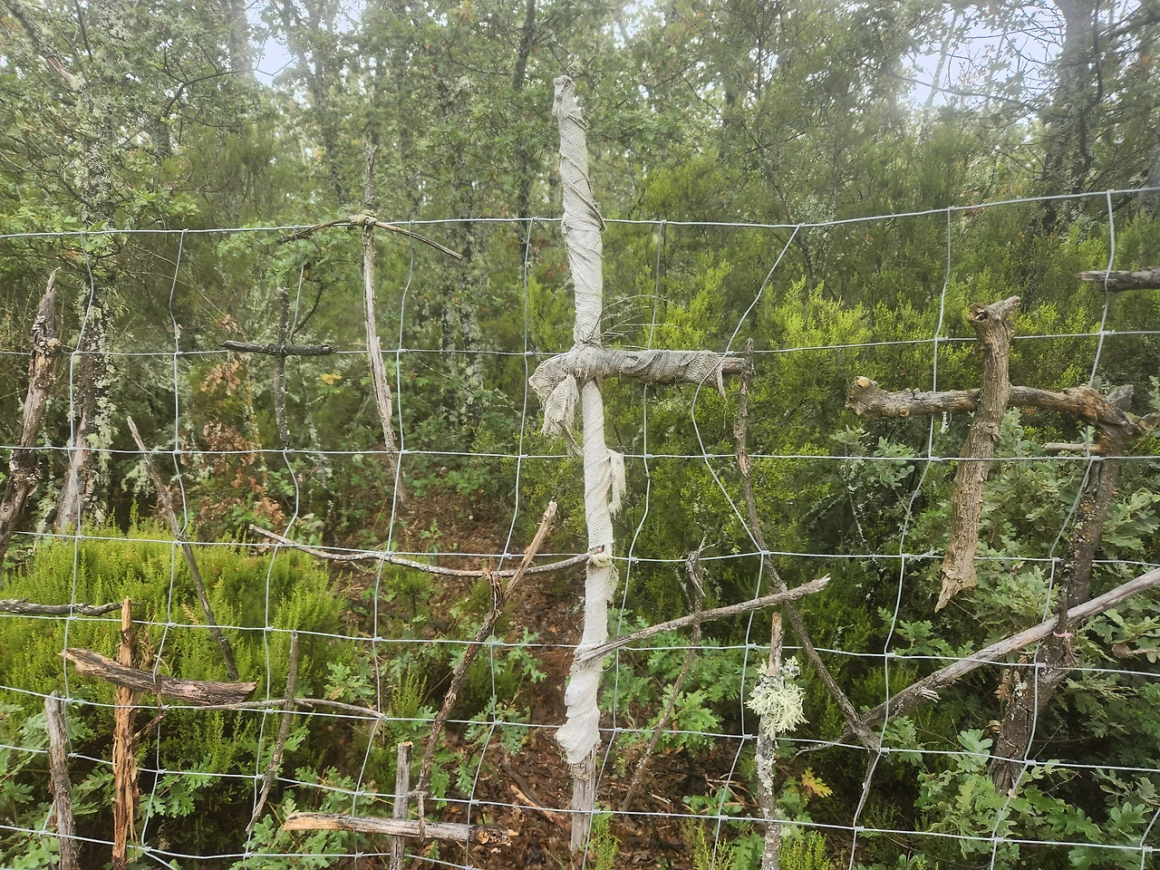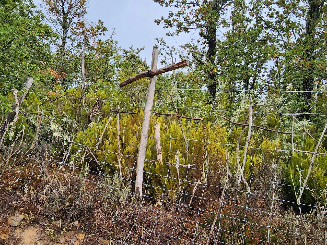 십자가.. 매일 하루에 한번 이상, 여기 걷는 길에서 마주치는 십자가.. 그런데 오늘, 엘간소를 넘어서는 1100고지 되는 길에서 또 많은 나무 십자가를 본다.