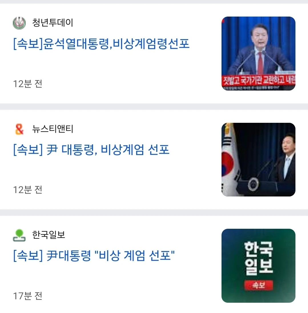 비상계엄을 선포했다는 소식을 어떤 분이