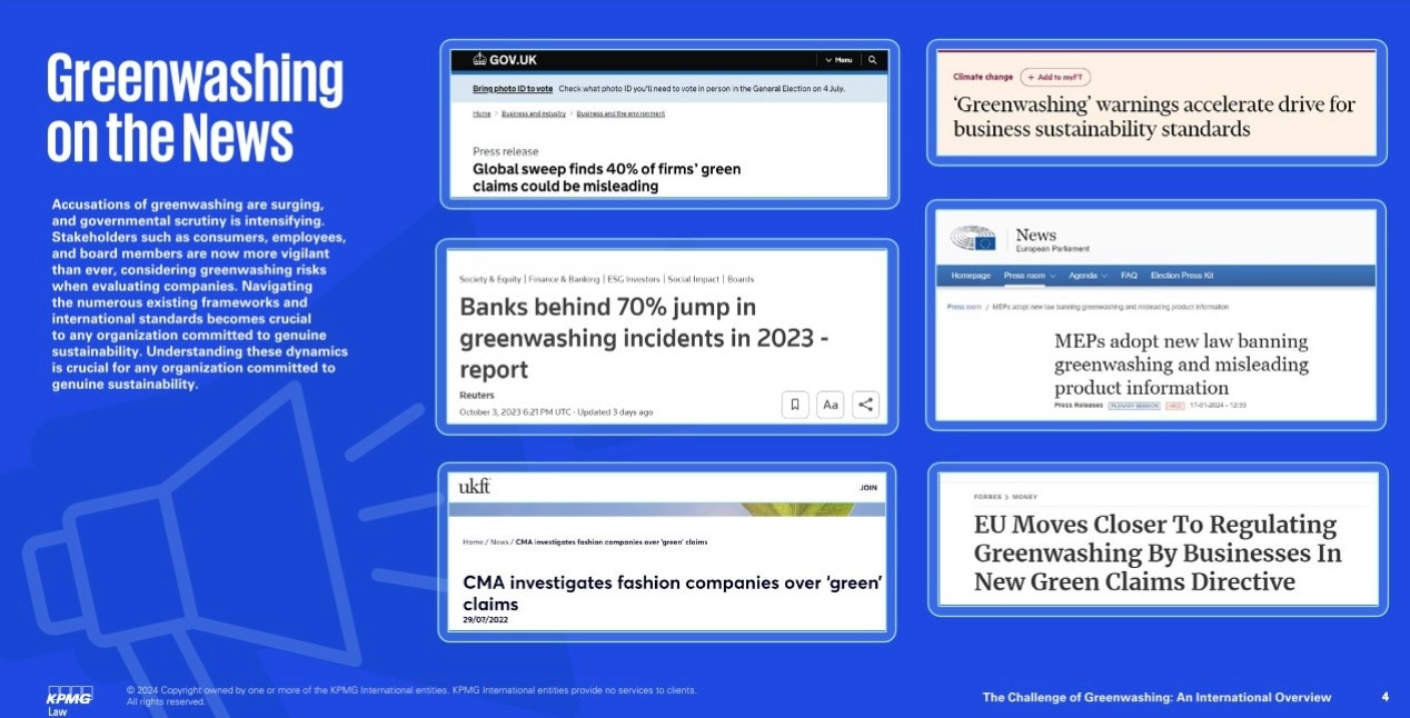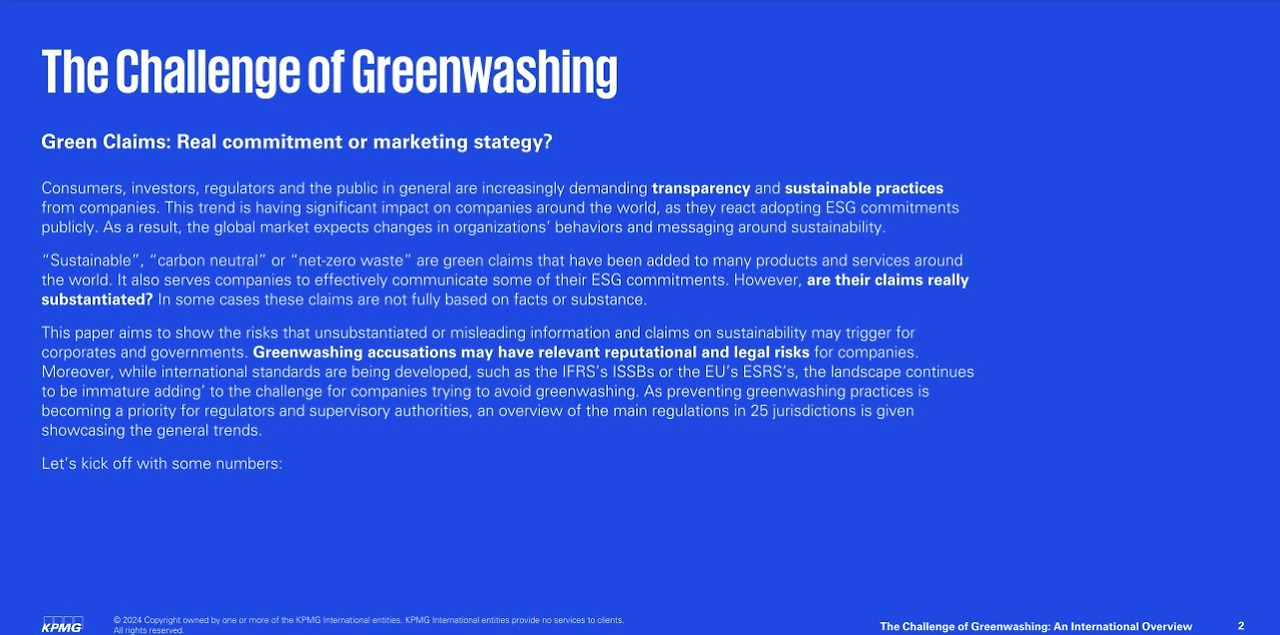 • 기업이 허위 환경 주장을 할 경우 법적 제재 및 벌금 부과 위험 증가 oai_citation:4‡KPMG_Law_Greenwashing_1740280172.pdf.