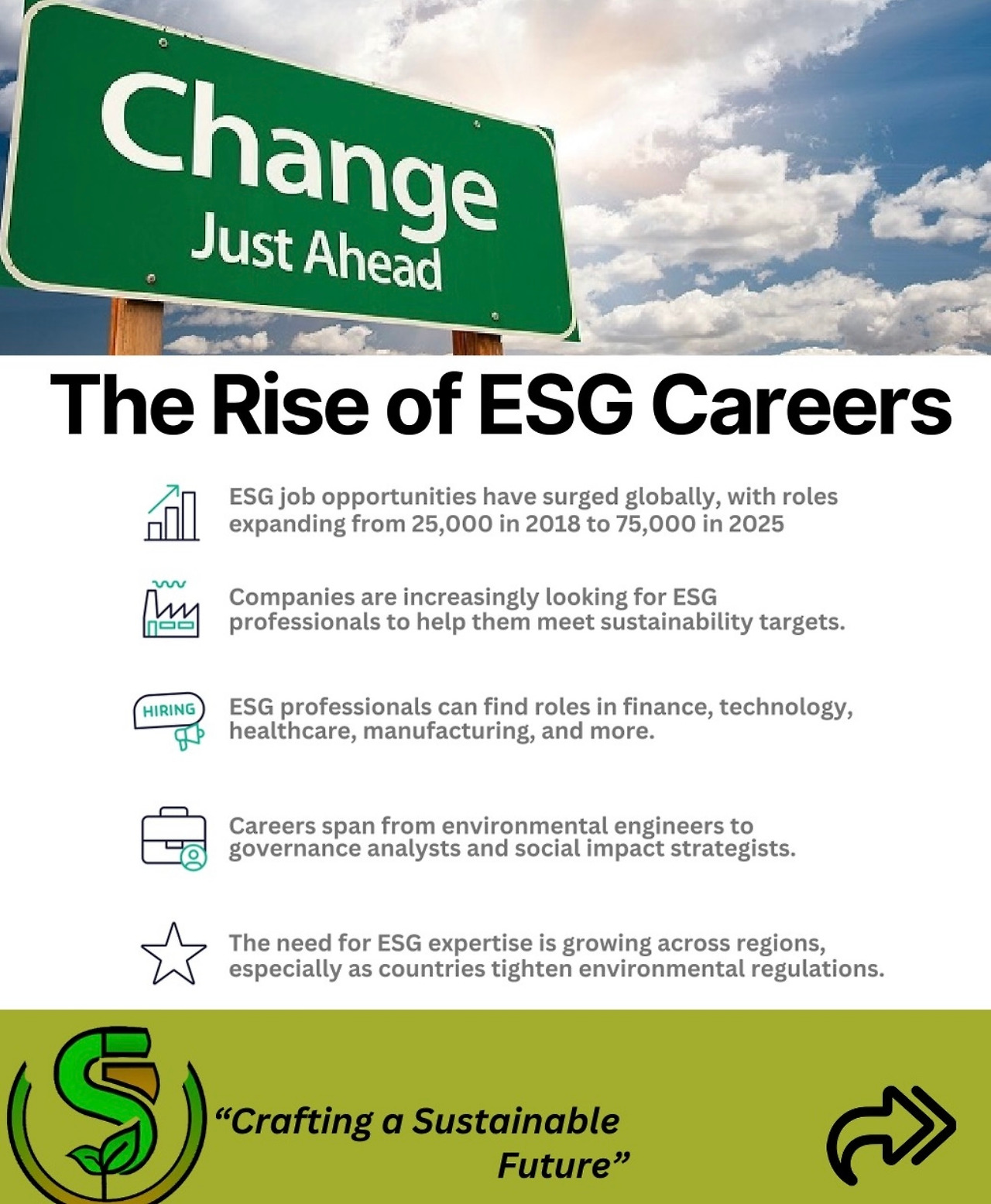 • ESG 관련 직무는 2018년 25,000개에서 2025년 75,000개로 증가.