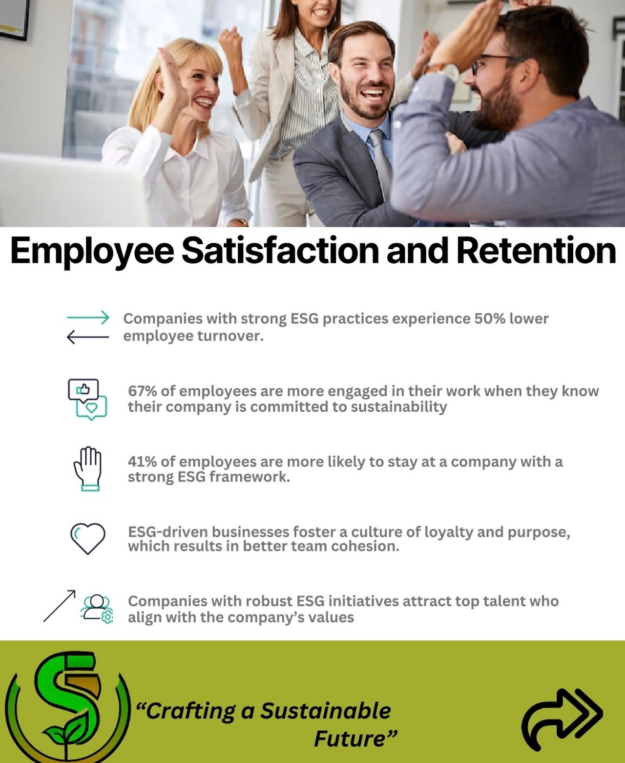 • ESG를 중시하는 기업은 직원들에게 목적의식을 부여하고 조직 내 결속력을 강화함.