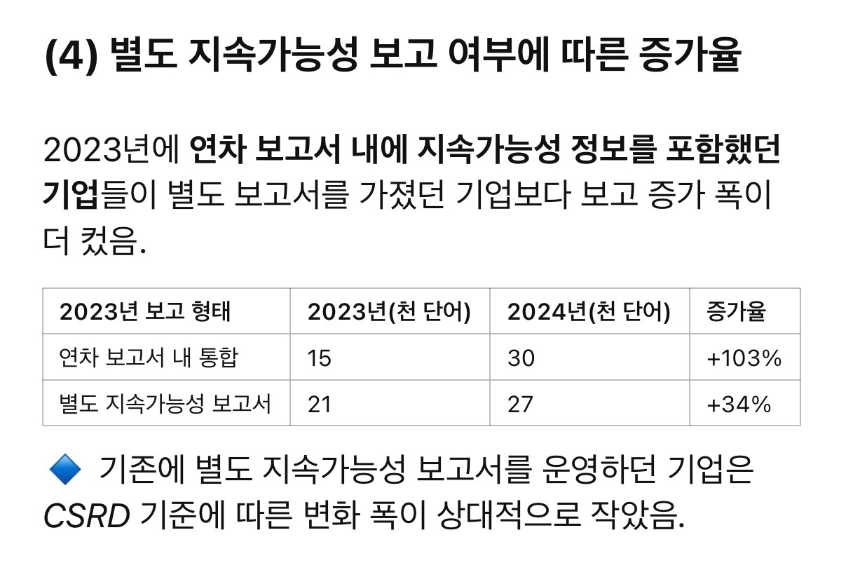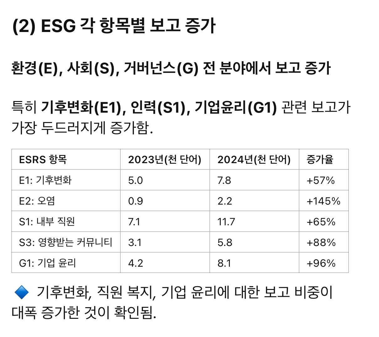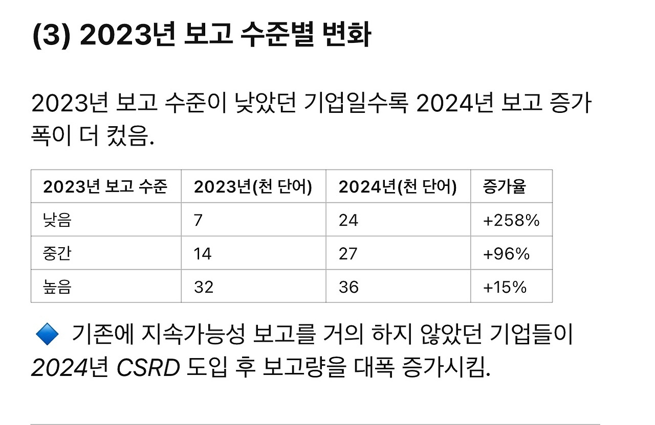 • 2024년: CSRD 기준을 준수하는 지속가능성 보고서만 분석