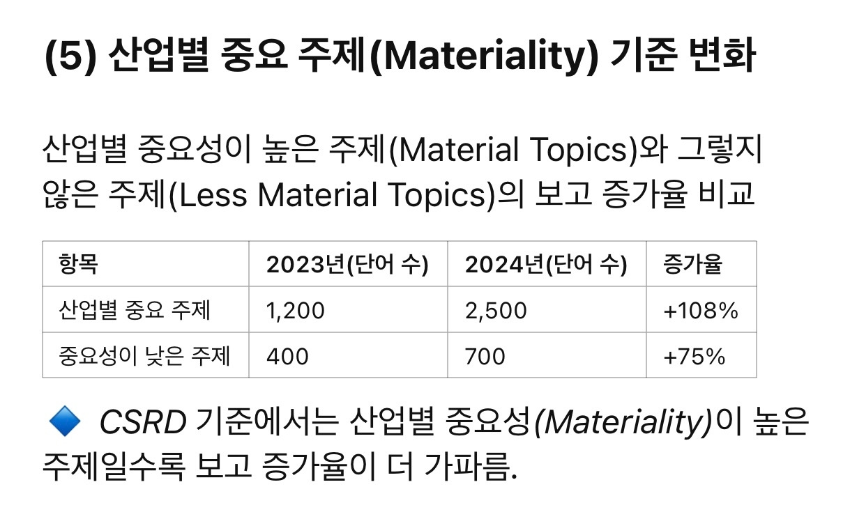 • **산업별 중요성(materiality)**을 반영한 보고 변화