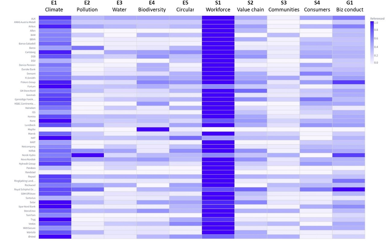 • Ørsted, Vestas, Novo Nordisk, Heineken 등 일부 기업은 기후 및 노동 이슈를 강하게 강조.