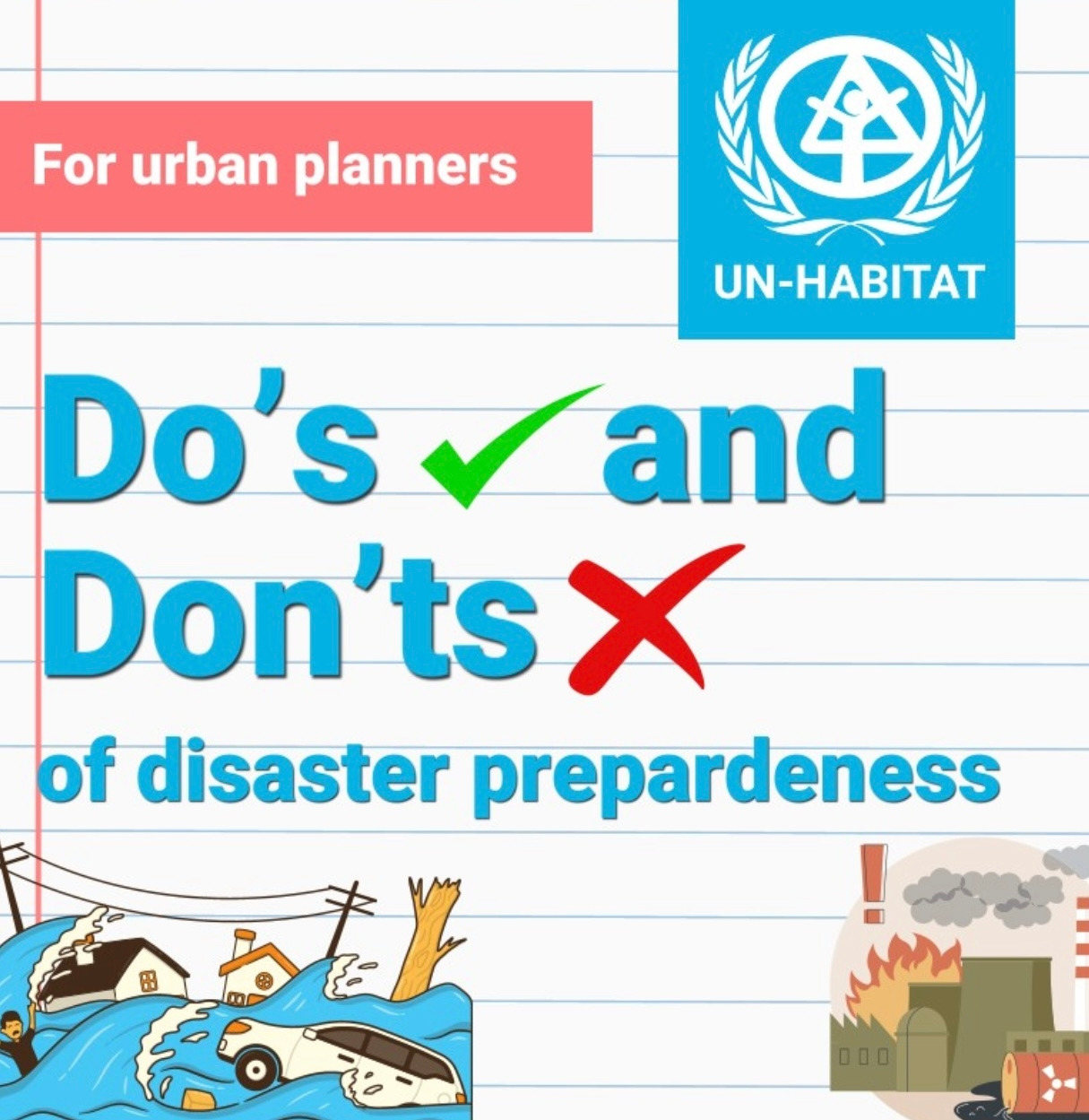 10억 명의 사람들이 비공식 정착촌에 살고 있습니다. 대피를 위한 열린 공간을 계획하고 비상 접근 경로를 보장합니다.