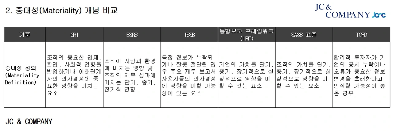 • TCFD가 기후 공시의 핵심 기준이며, ISSB(국제회계기준위원회) IFRS S2가 이를 통합하여 글로벌 표준화 진행 중.