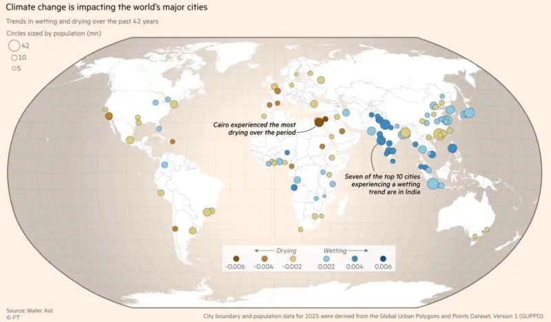 어제 FT에 실린 정말 흥미로운 연구는 기후 변화가 어떻게 더 극단적인 물 영향을 일으키고 있는지를 보여줍니다(https://on.ft.com/4bHv6ps).