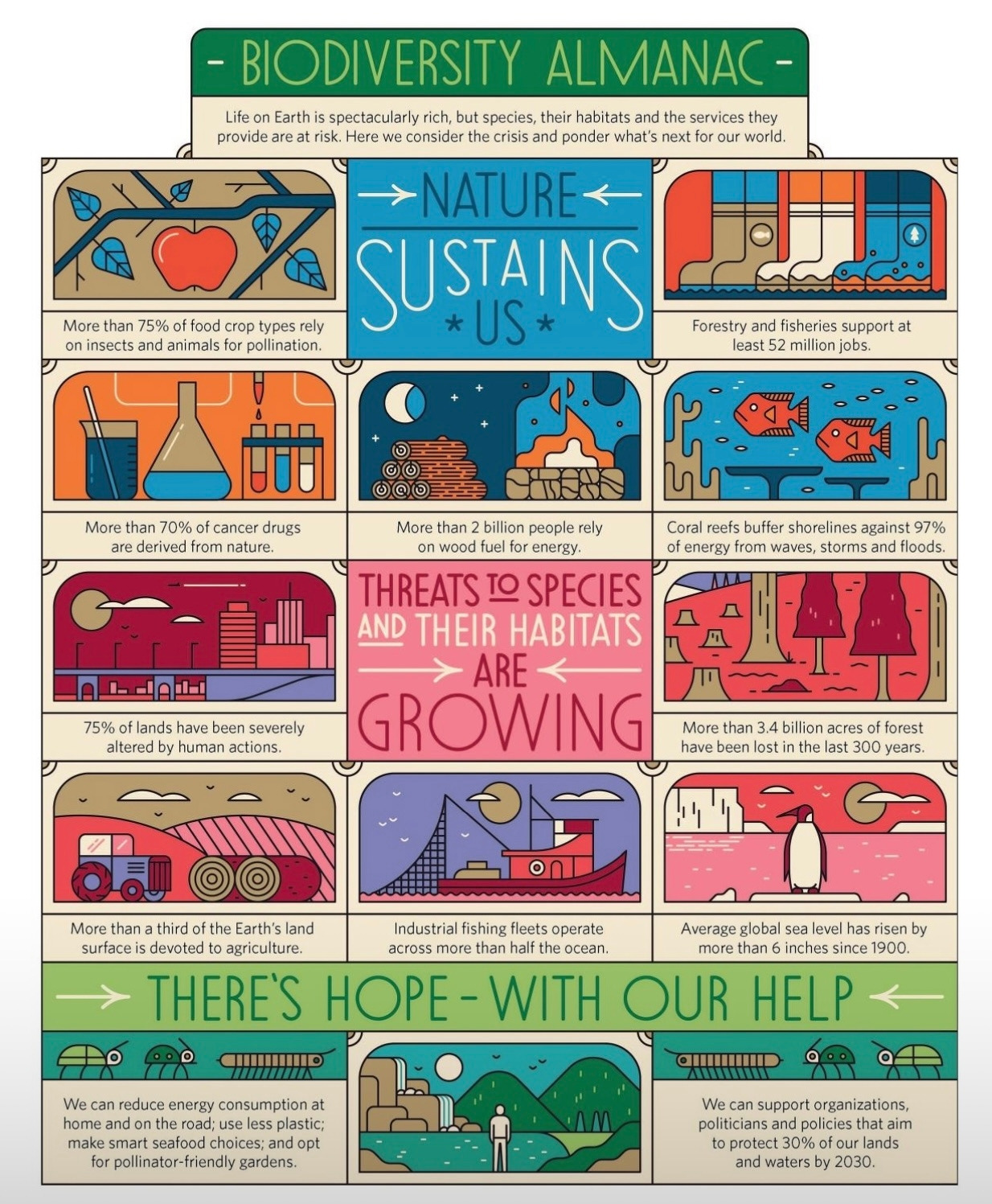 자연이 생명을 어떻게 지원하는지, 그리고 생물 다양성에 대한 위협이 커지고 있는지에 대한 훌륭한 스냅샷을 제공합니다.