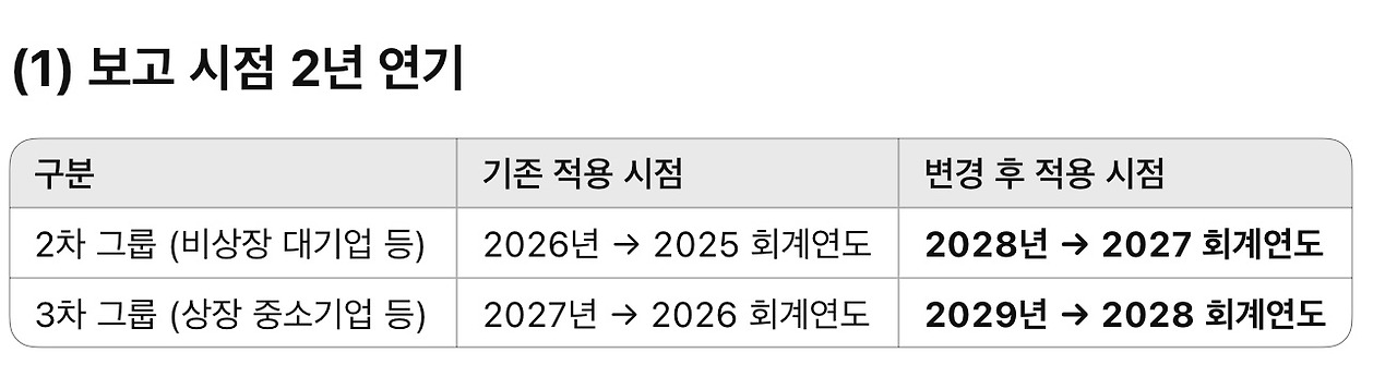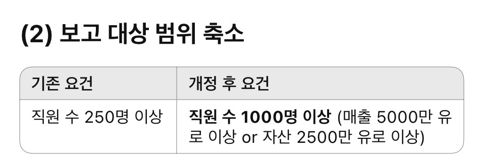 • 특히 중소기업 및 비상장 대기업의 ESG 보고 부담 완화