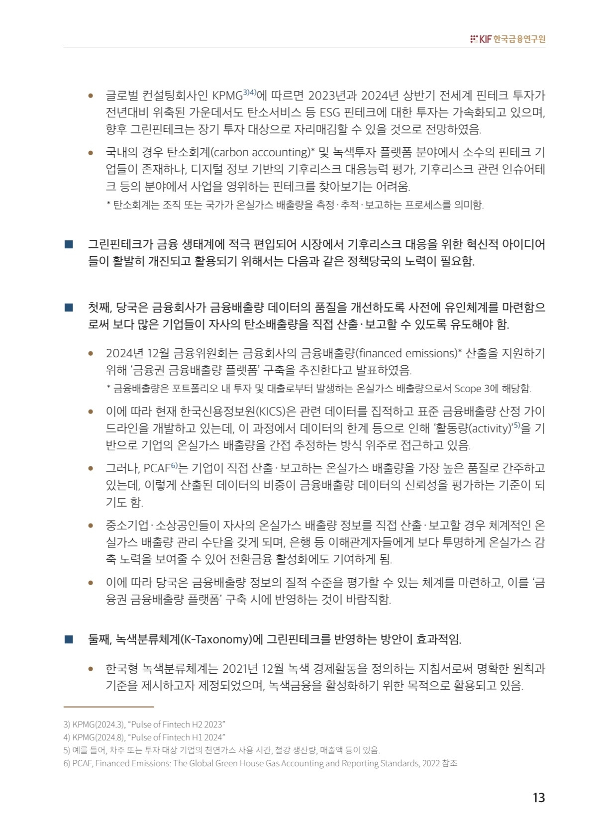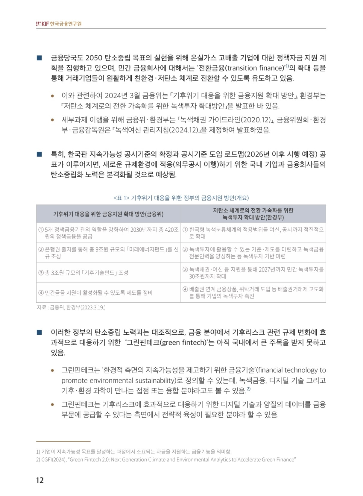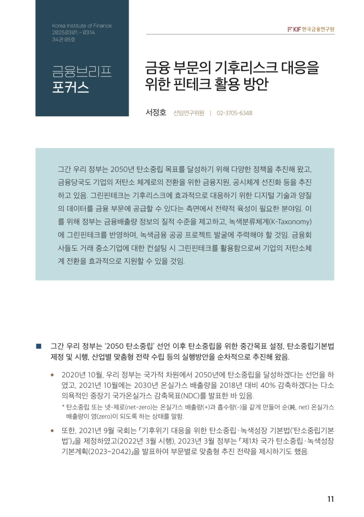 서정호 (2025). 「금융 부문의 기후리스크 대응을 위한 핀테크 활용 방안」, 금융브리프 제34권 05호, 한국금융연구원, 2025년 3월 1일~14일.