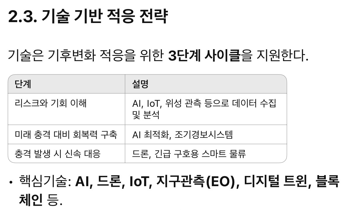 • 목적: 기후 적응(Climate Adaptation)을 위해 첨단기술을 활용하고, 가치사슬 전반에 협업 플랫폼을 구축할 것을 제안.