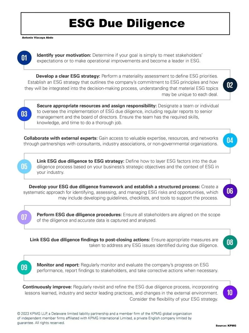 • ESG 요소가 실사 프로세스에 어떻게 통합되는지 정의.