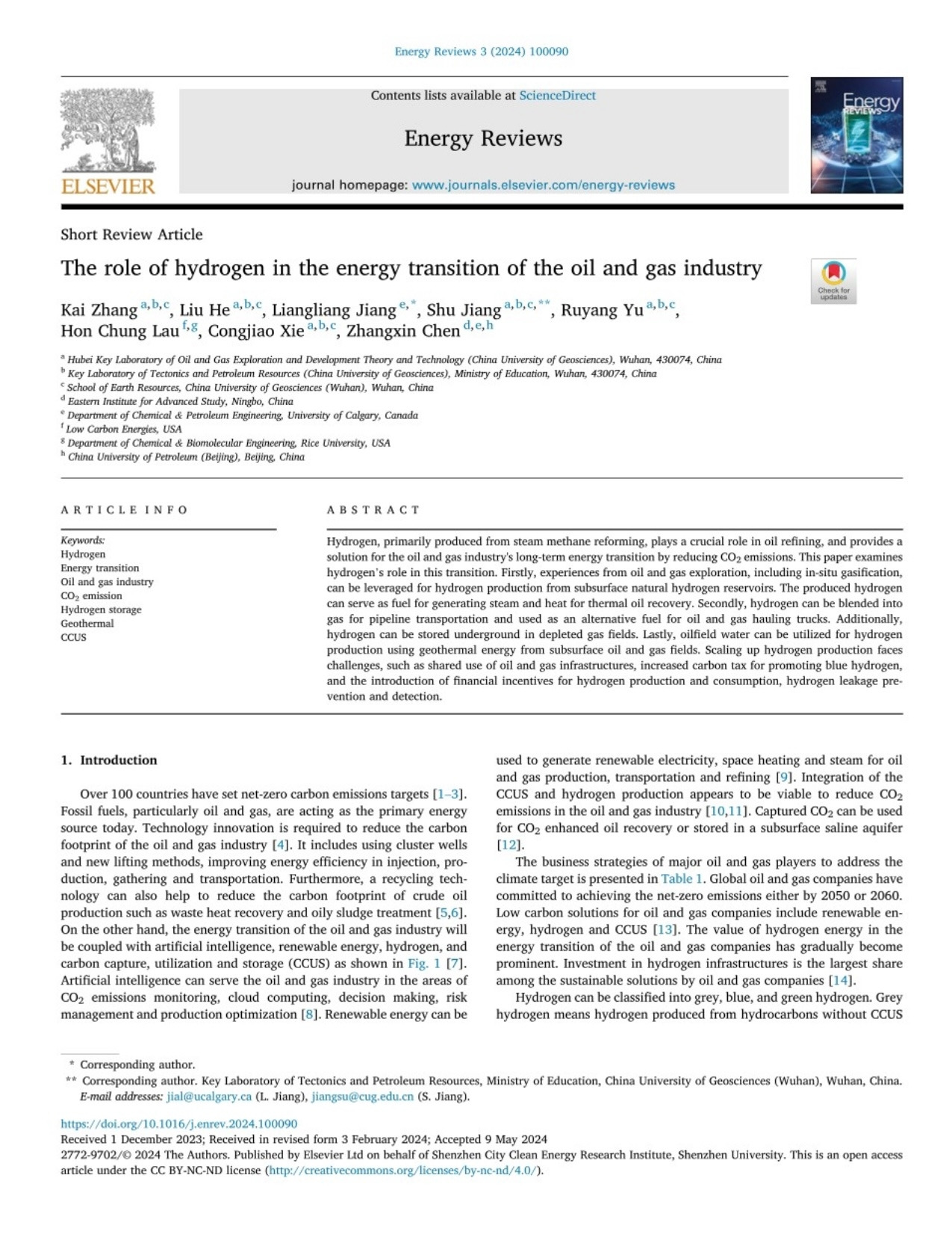• Zhang, K., He, L., Jiang, L., et al. (2024). The role of hydrogen in the energy transition of the oil and gas industry.